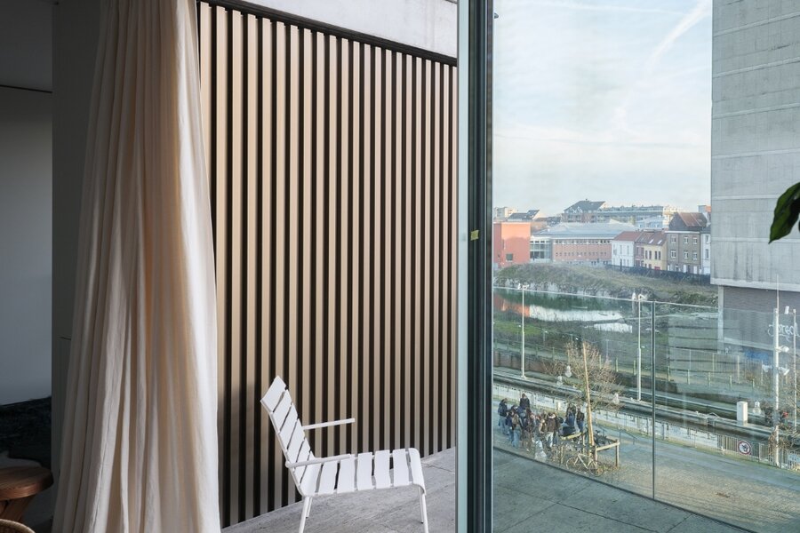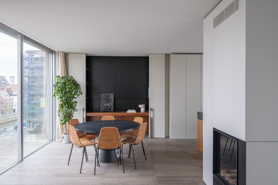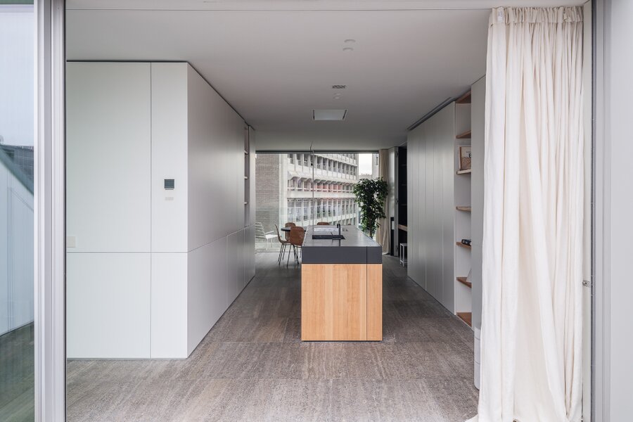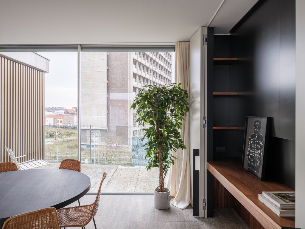 Penthouse duplex haut de gamme avec trois terrasses, situé dans un immeuble architectural d’exception conçu par le bureau Element Architecten.