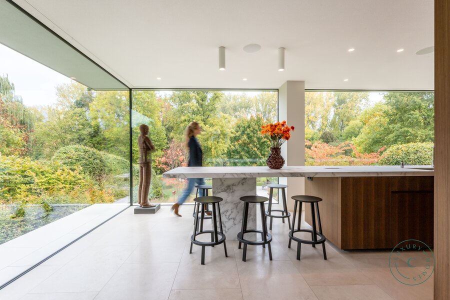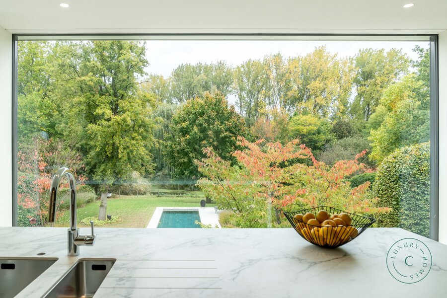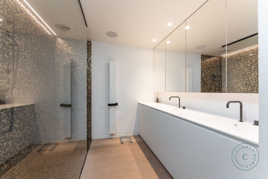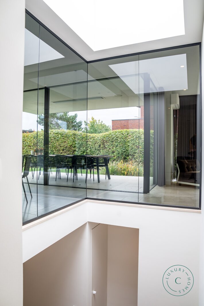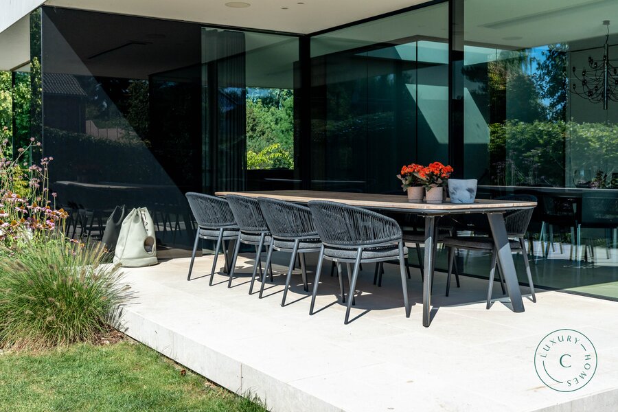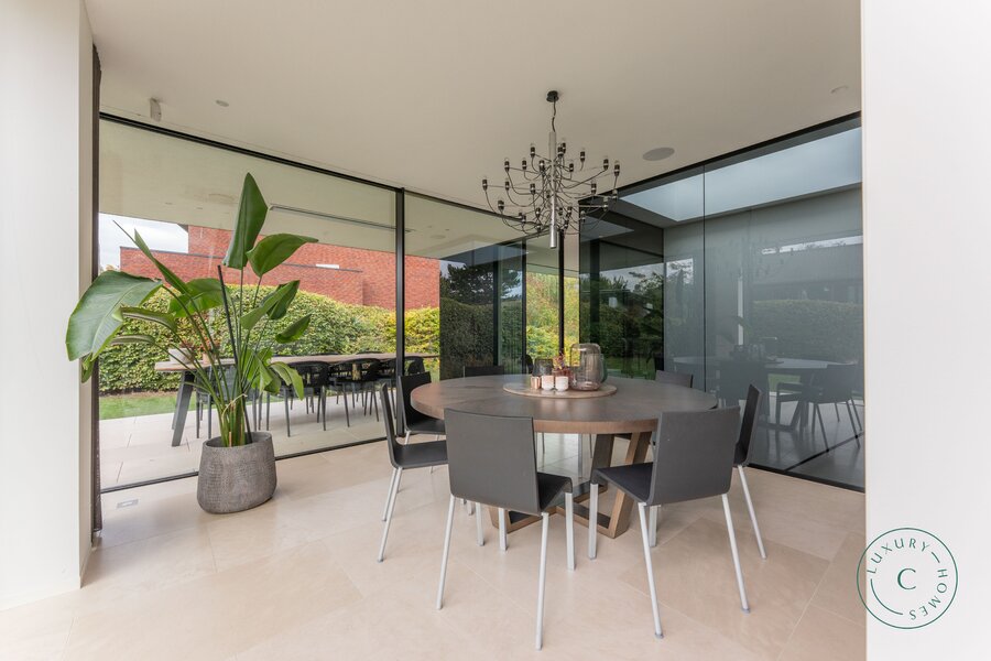 Tot slot beschikt de villa over een praktische tuinkamer met alle technische installaties. De aluminium ramen, hoogwaardige verlichting en zorgvuldig schilderwerk benadrukken het luxueuze en instapklare karakter van het huis.