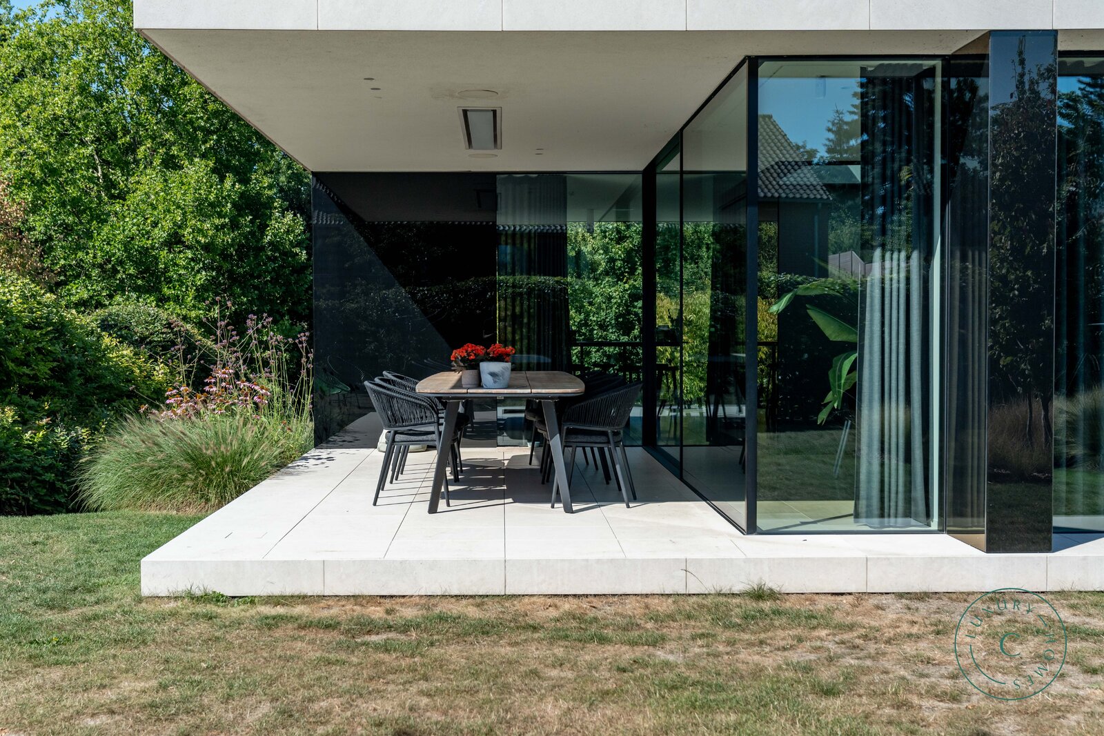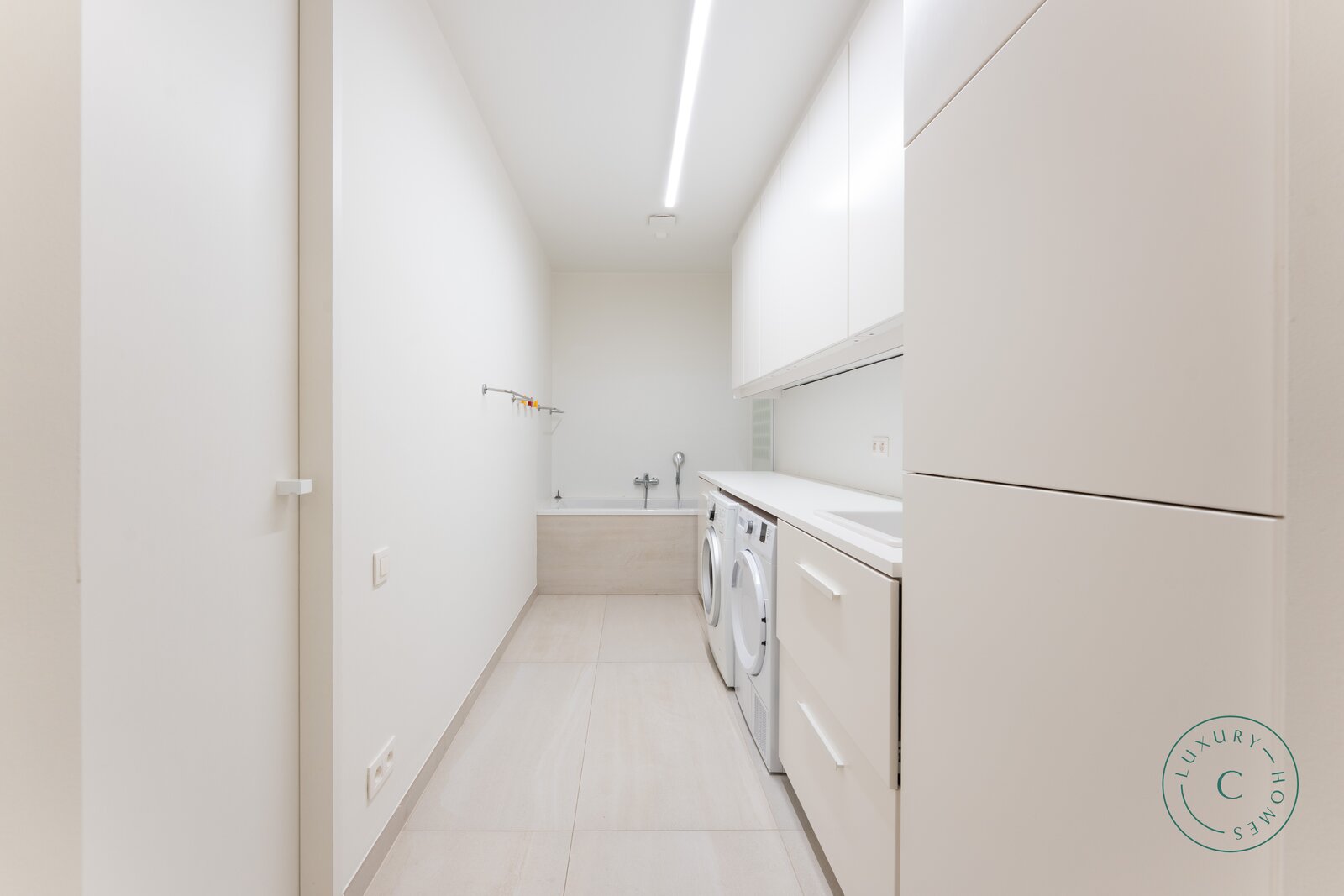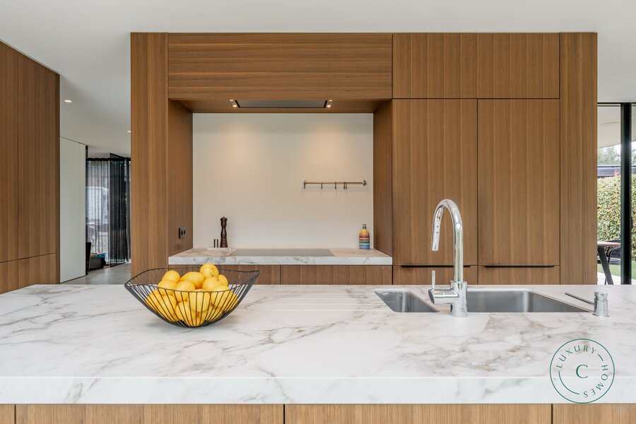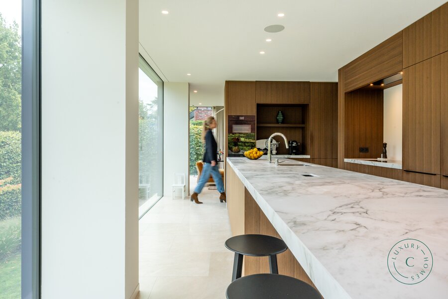 Tot slot beschikt de villa over een praktische tuinkamer met alle technische installaties. De aluminium ramen, hoogwaardige verlichting en zorgvuldig schilderwerk benadrukken het luxueuze en instapklare karakter van het huis.
