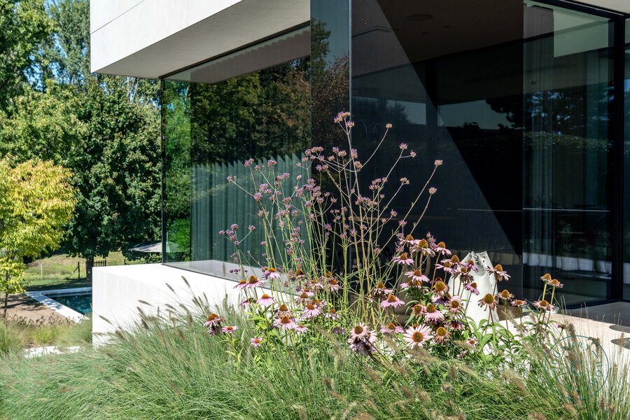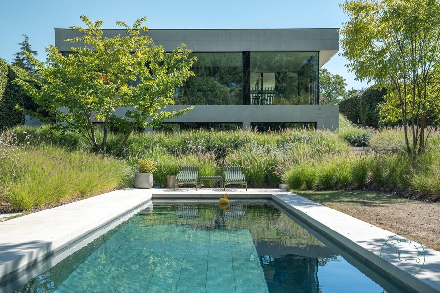 Pure architectuur met serene vijverzichten