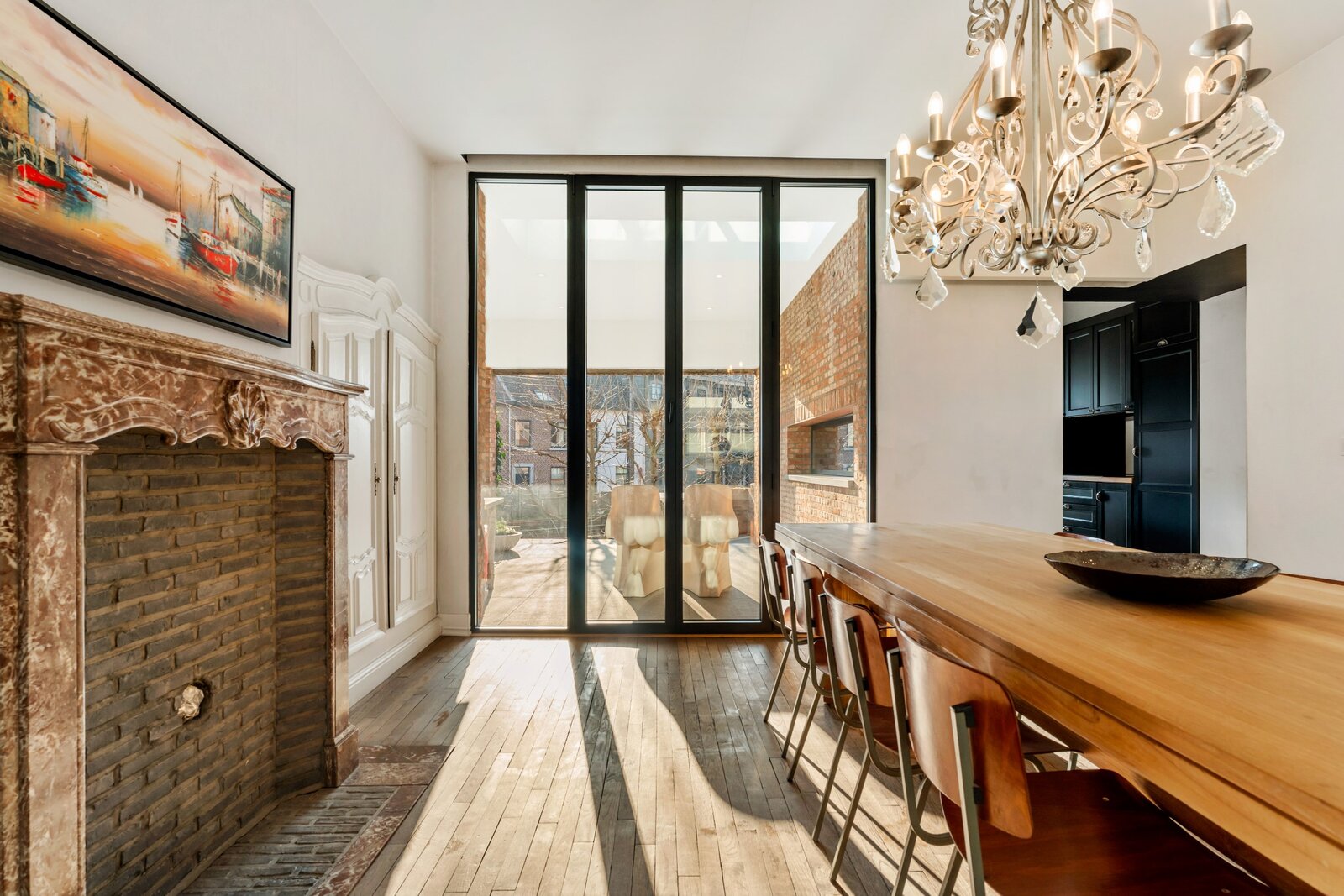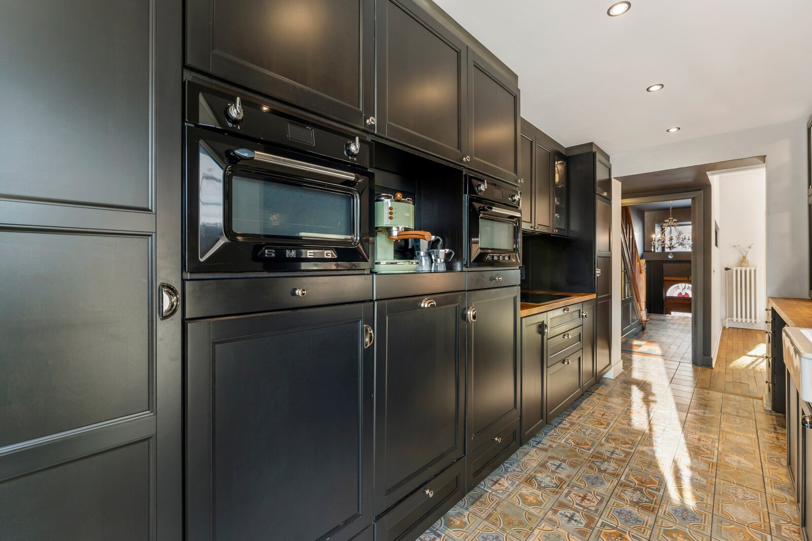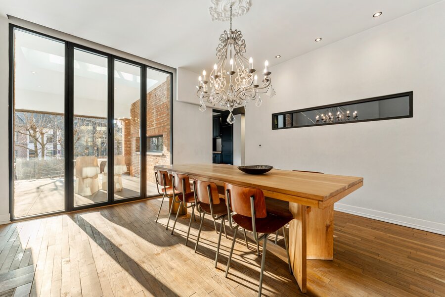 Verdieping 1: prachtige inkomhal, leefruimte, eetkamer, keuken, overdekt terras