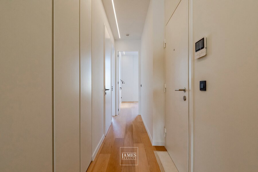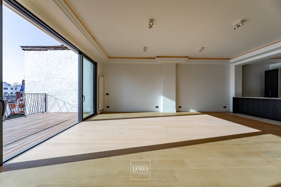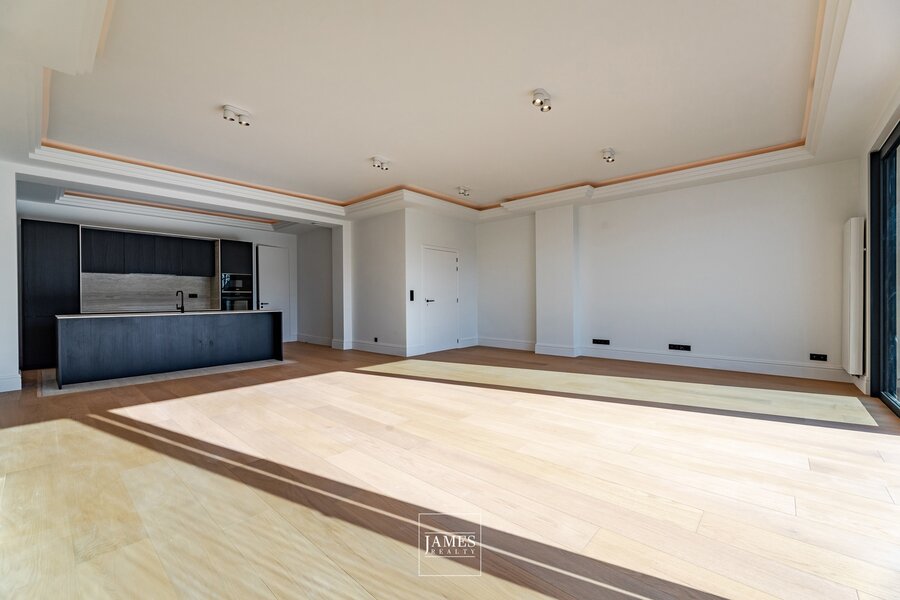 Développant une surface brute d’environ 155 m² (selon PEB), l’appartement bénéficie de prestations contemporaines de qualité et d’une performance énergétique particulièrement favorable.