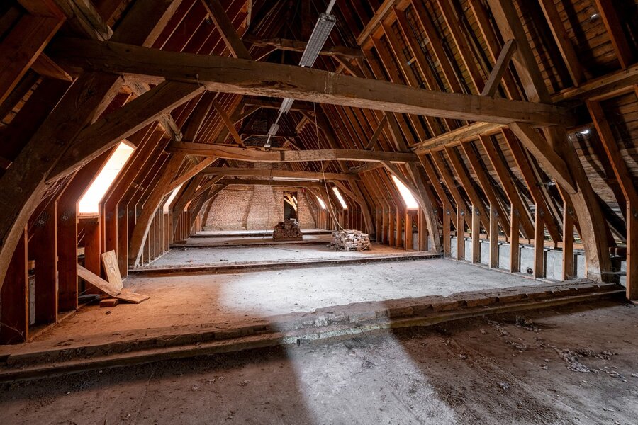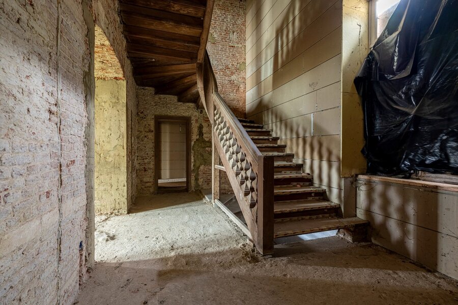 - Les planchers en bois ont été remplacés par des poutres métalliques et du béton