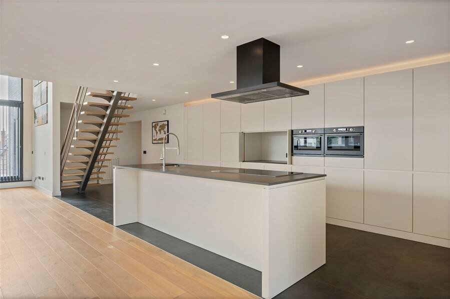 Cet appartement est surprenant à plusieurs égards : l'espace ainsi que la quantité de lumière et de hauteur dans l'appartement, spacieux mais très confortable, garage avec jardin privé !