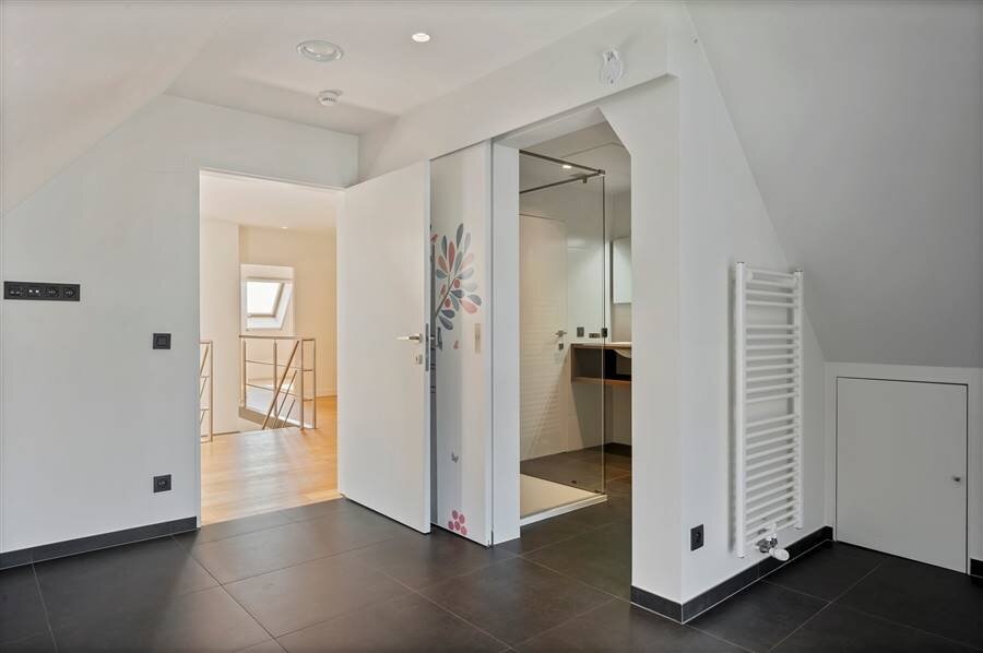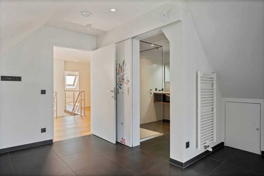 Par l'escalier design, accès au 3ème étage avec une pièce polyvalente, idéale comme bureau avec de belles vues sur l'espace de vie. Pièce séparée pouvant être transformée en espace bien-être ou en chambre supplémentaire. Deux autres chambres, une deuxième salle de bains et une buanderie.