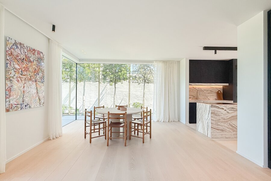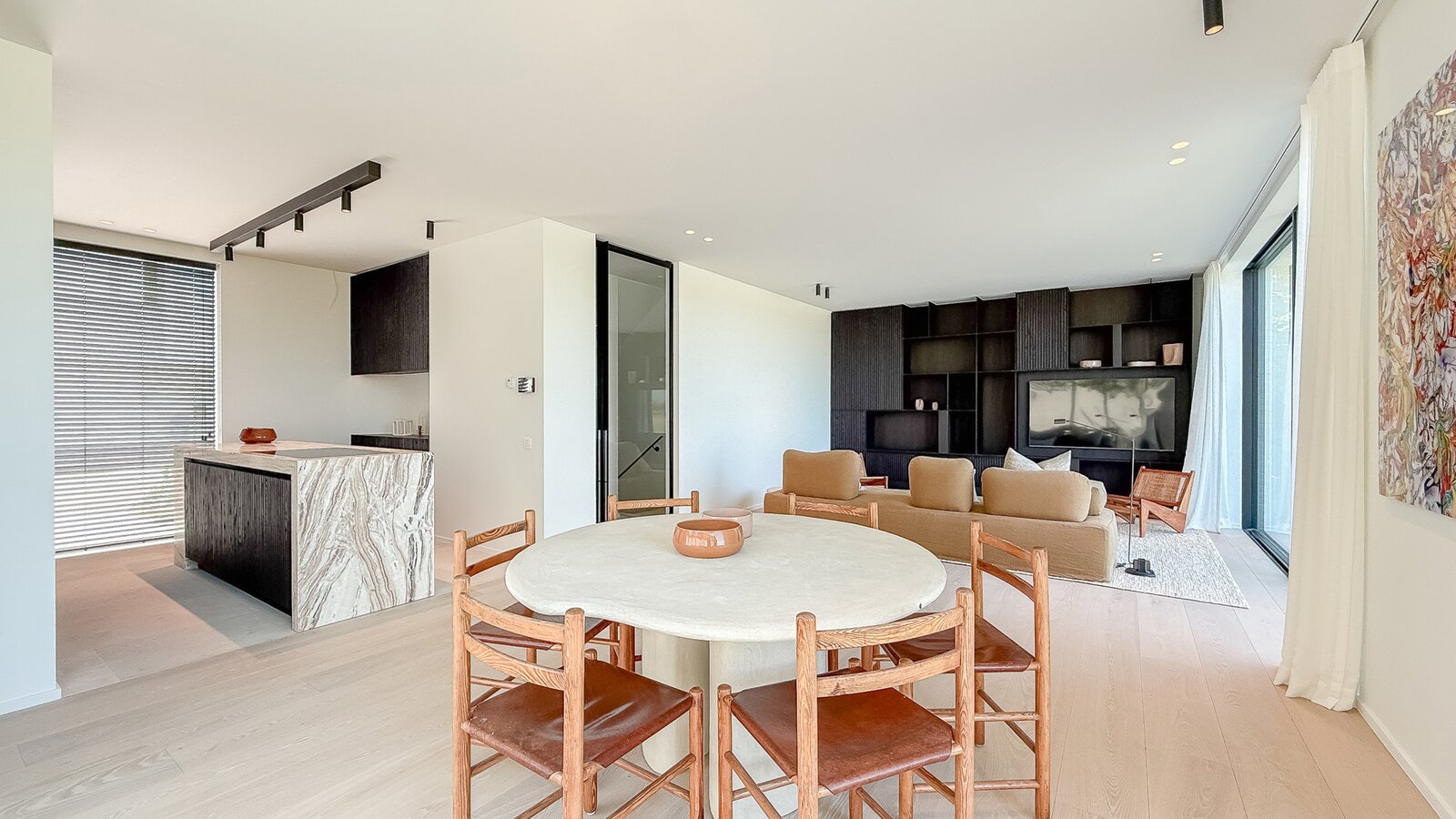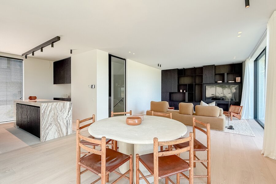 Située dans un environnement calme et verdoyant, à quelques pas seulement du centre animé du Zoute, cette élégante villa neuve séduit par son confort, ses volumes généreux et son raffinement. Les espaces de vie ouverts et baignés de lumière forment le cœur vibrant de la maison, avec une transition fluide entre le salon, la salle à manger et la cuisine entièrement équipée. De larges baies vitrées relient harmonieusement l’intérieur à la terrasse ensoleillée et offrent une vue à couper le souffle sur les polders environnants.