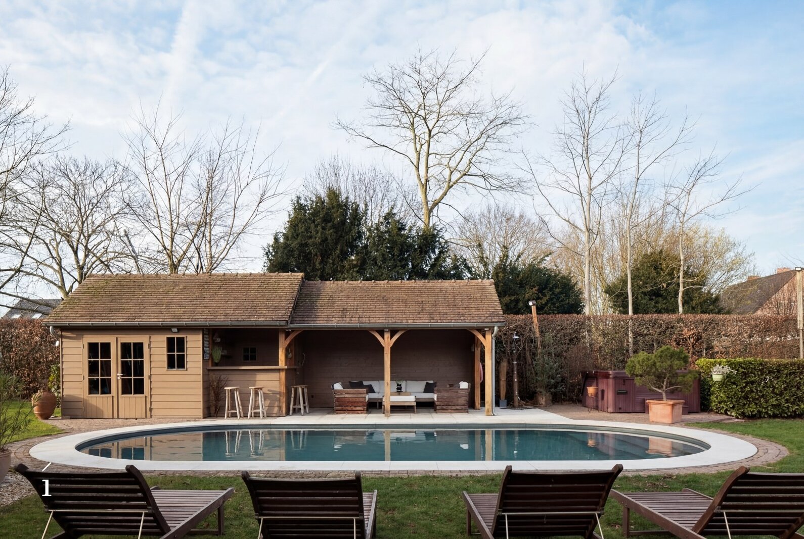 Het buitengebeuren wordt vervolledigd met een zwembad van 5 x 10 m, een poolhouse, een jacuzzi en een tuinhuis, ideaal voor wie het buitenleven weet te appreciëren.