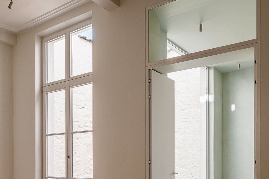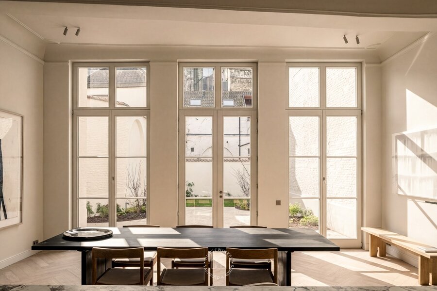 Vanuit de open keuken en woonkamer zijn er unieke zichten op de Sint-Baafskathedraal, een zeldzame en bijzonder waardevolle troef in het historische centrum van Gent.