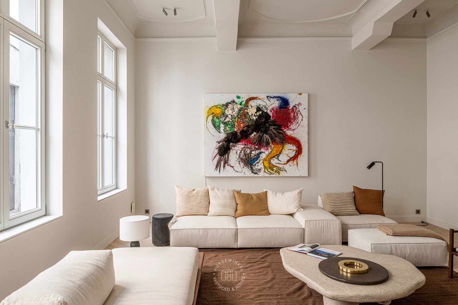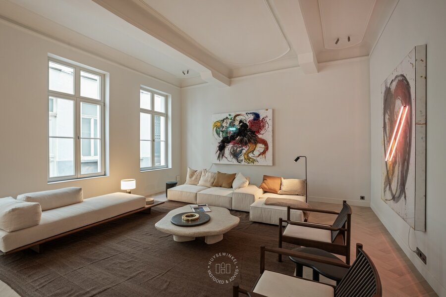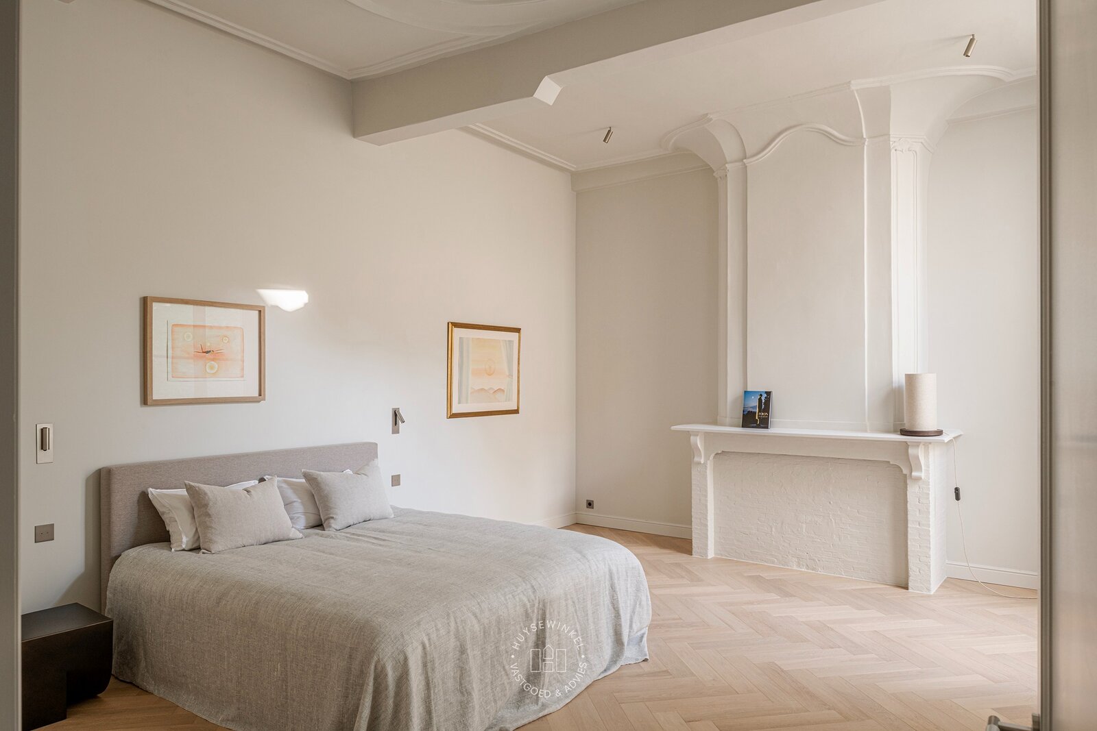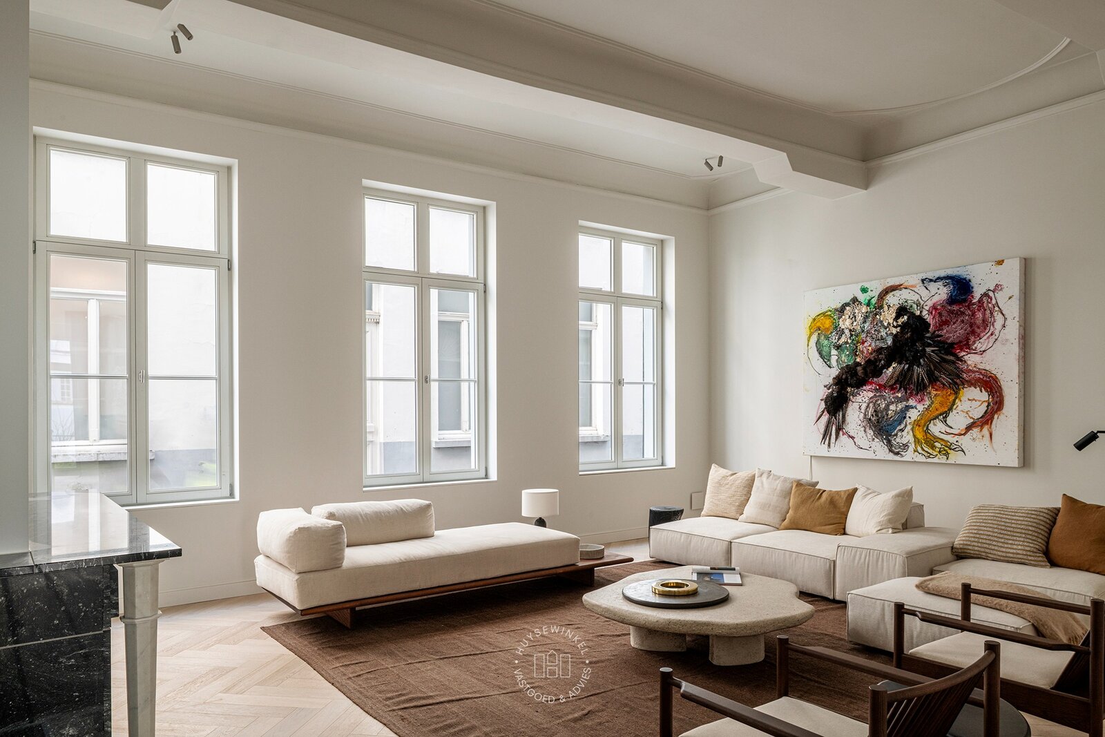 Het appartement beschikt over een royale en doordachte indeling en onderscheidt zich door een luxueuze afwerking met de beste materialen, prachtige volumes en een ruime zuidgerichte tuin van ca. 97 m². Deze groene buitenruimte vormt een zeldzame oase van stilte en zon in het hart van de stad.