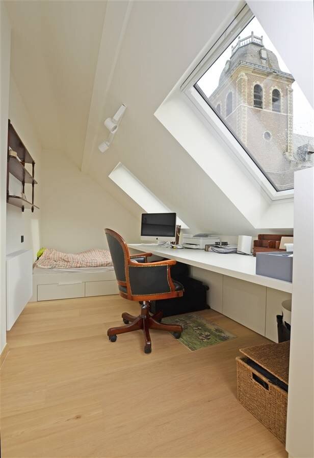 De derde slaapkamer met inbouwkasten is momenteel ingericht als bureel.