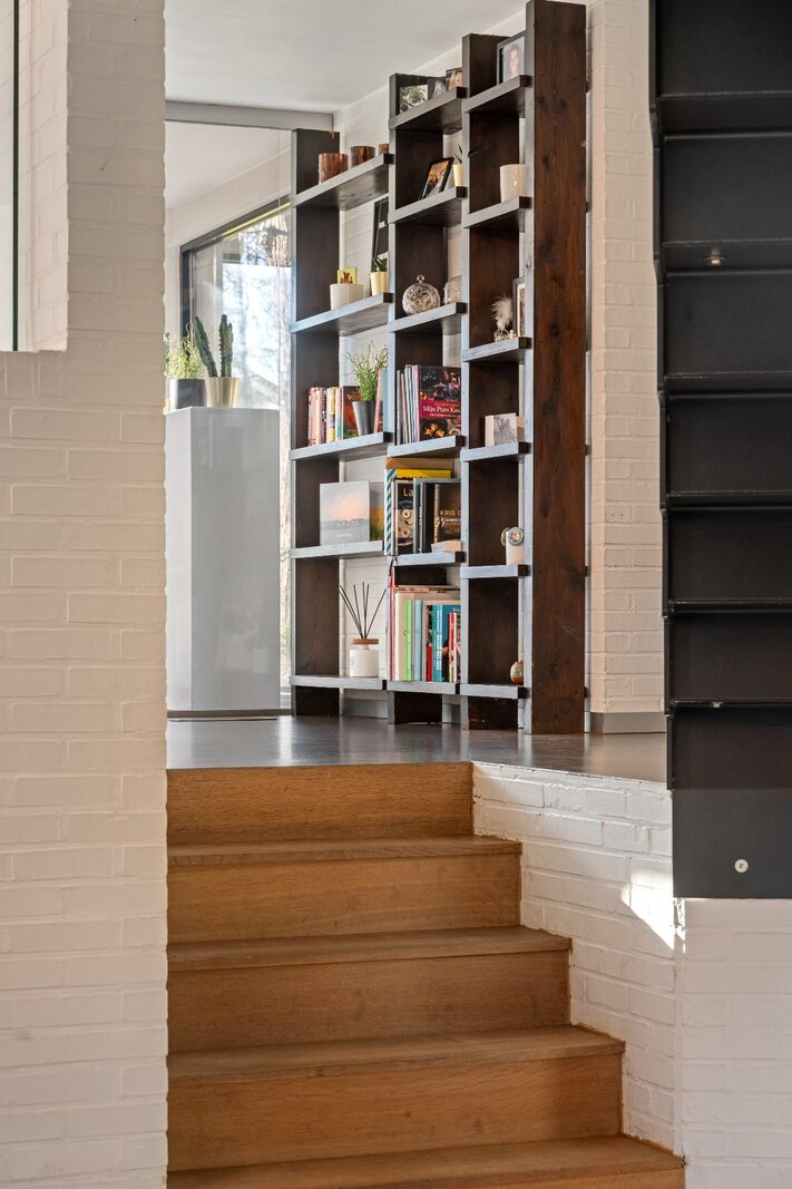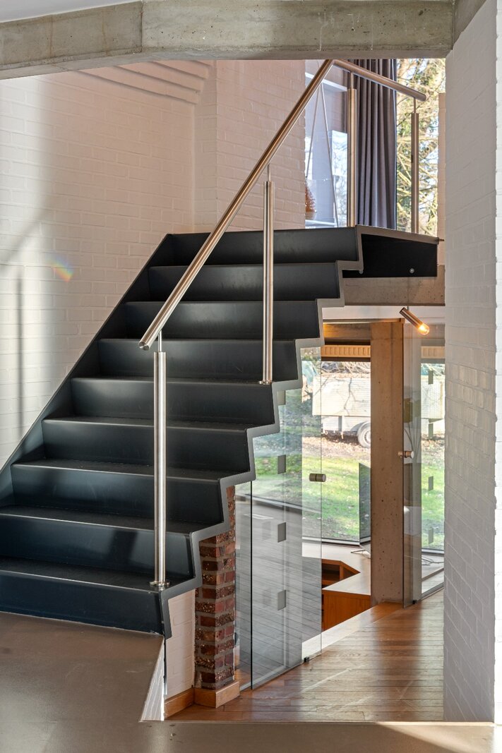 De centraal gelegen keuken vormt het hart van de woning en staat in directe verbinding met de leefruimtes en zichten op het groen. Mooie, authentieke materialen versterken het architecturale karakter. Typische seventies-elementen, zoals de karaktervolle trap, geïntegreerde functionaliteit in de vormgeving, slimme opbergoplossingen en cosy hoeken, geven het geheel een unieke signatuur.