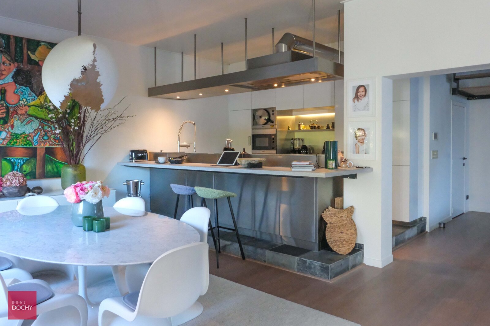 Volledig instapklare loft/appartement bestaande uit: inkomhal, lichtrijke living in parket, open ingerichte keuken met zicht op de tuin, bureelruimte, 3 slaapkamers, ruime badkamer (bad + inloopdouche), multifunctionele kelderverdieping (praktijk/hobbykamers/opslagruimte/kantoor) met afzonderlijke toegang via de straat, garage, groot terras palend aan de vijver en ruime tuin, tuinberging en parking voor 4 wagens. Heel rustig gelegen toch nabij Kortrijk centrum.