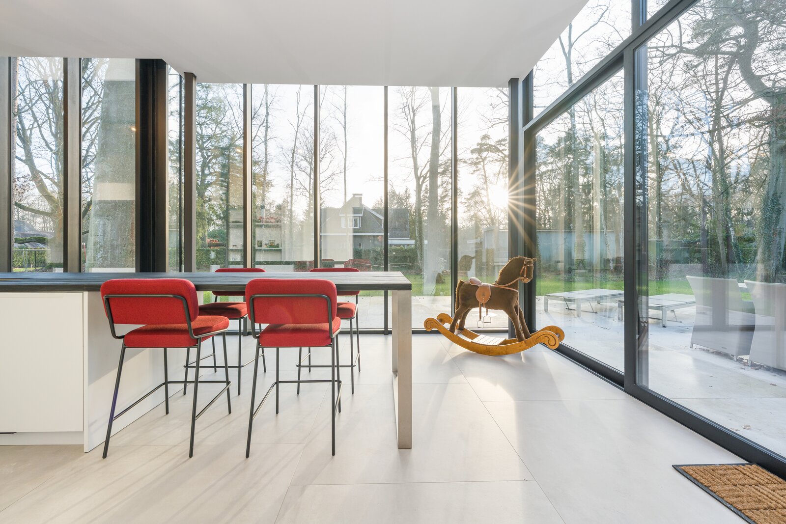 Vous êtes accueilli dans un hall d'entrée élégant avec un vestiaire et des toilettes pour les invités. A côté se trouve une pièce polyvalente, parfaite pour servir de bureau, de salle de télévision ou de coin salon supplémentaire, ainsi qu'une salle à manger accueillante.