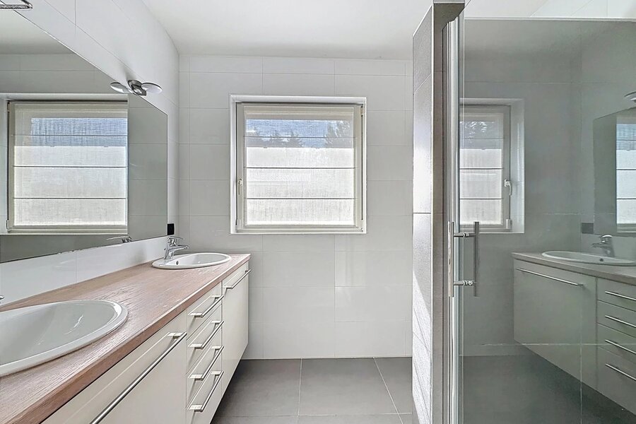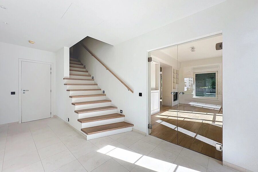 Proche du quartier du Prince d'Orange et de la Place Saint-Job, superbe maison de type 3 façades d'une superficie totale de ± 289 m² construite en 2010. Elle se compose d'un vaste hall d'entrée avec un vestiaire et un watercloset, d'un vaste séjour avec une cassette au gaz (± 46,30 m²), d'une cuisine super équipée (± 17,40 m²), d'une jolie salle à manger (± 19,15 m²), d'un hall de nuit, de 4 belles chambres (± 27,80 m², ± 18,55 m², ± 15,95 m² et ± 15,85 m²) dont la suite parentale avec son espace dressing et sa salle de bains et douche et de 2 salles de douche. Belle terrasse accessible par la suite parentale ainsi qu'une jolie terrasse donnant sur un magnifique jardin (± 115 m²) orientés Sud Est. Caves comprenant une cave à vins et un double garage avec plusieurs emplacements devant la maison. La maison dispose d'une alarme Verisure, de double vitrage, d'une ventilation double flux, d'un adoucisseur d'eau et d'air conditionné. Charges : 100 €/mois (Forfait pour l'internet/télévision). PEB C-. A découvrir au plus vite chez Vaneau Lecobel !!