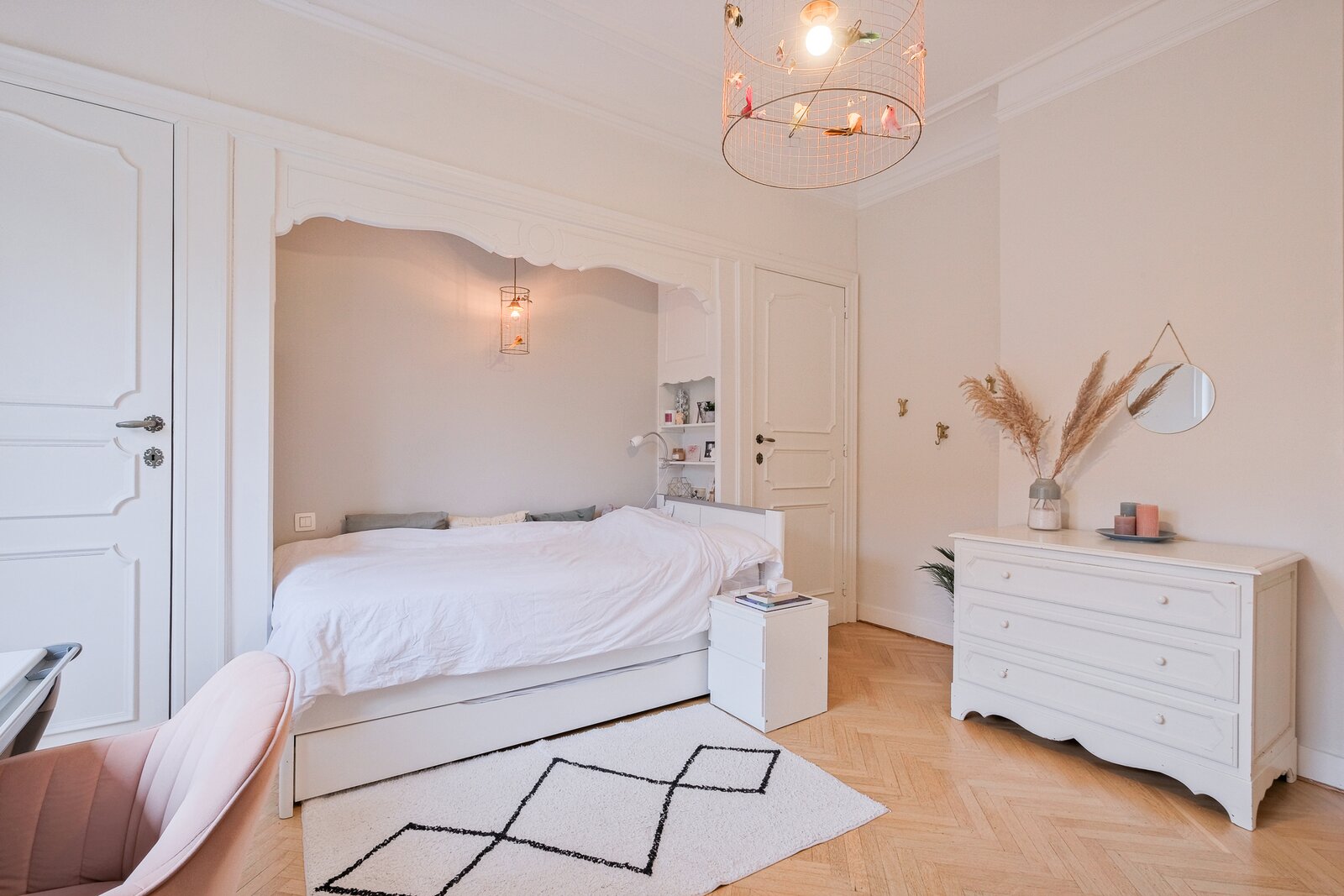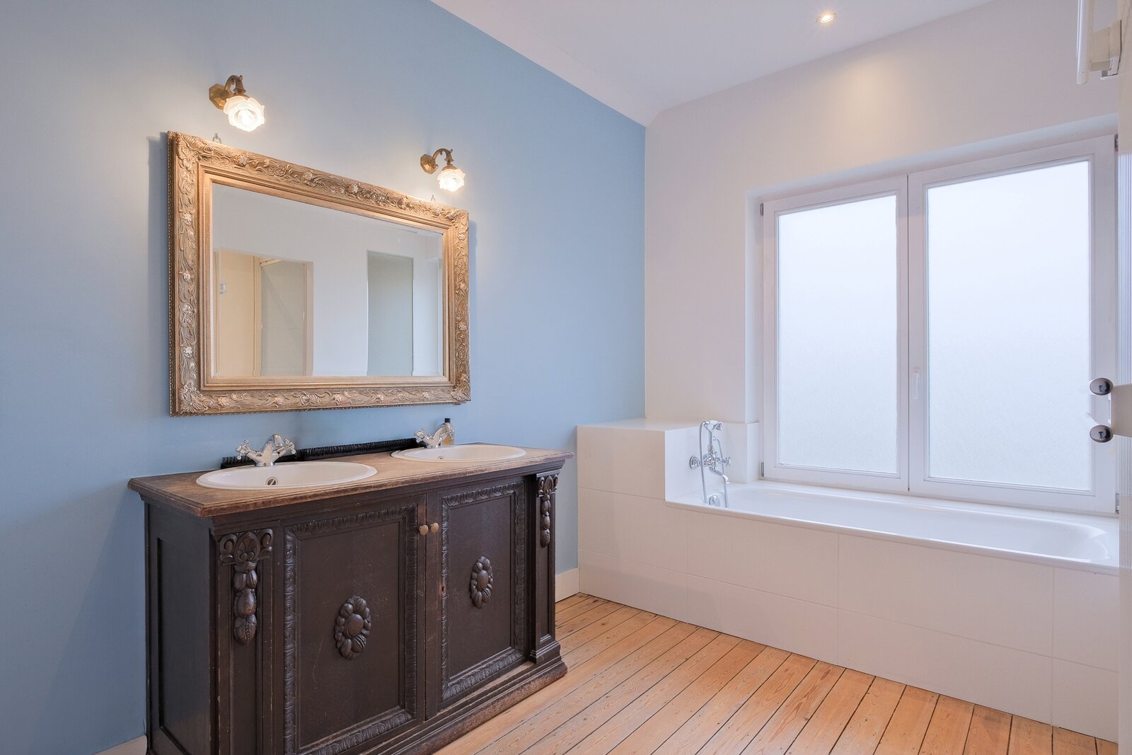 1ier étage (± 131 m²) : hall nuit de ± 10 m², 2 chambres de ± 18 et 13.5 m², salle d’eau de ± 7 m², toilette de ± 1 m², suite principale de ± 23 m² avec salle d’eau de ± 10 m² et dressing de ± 2.5 m²,