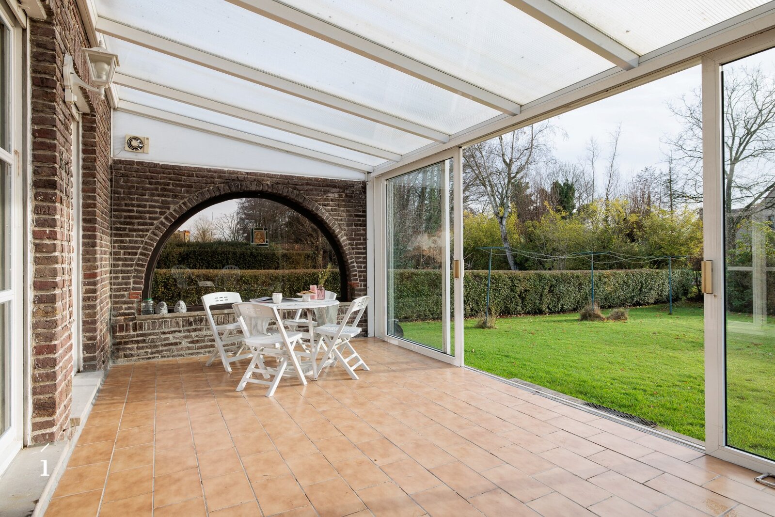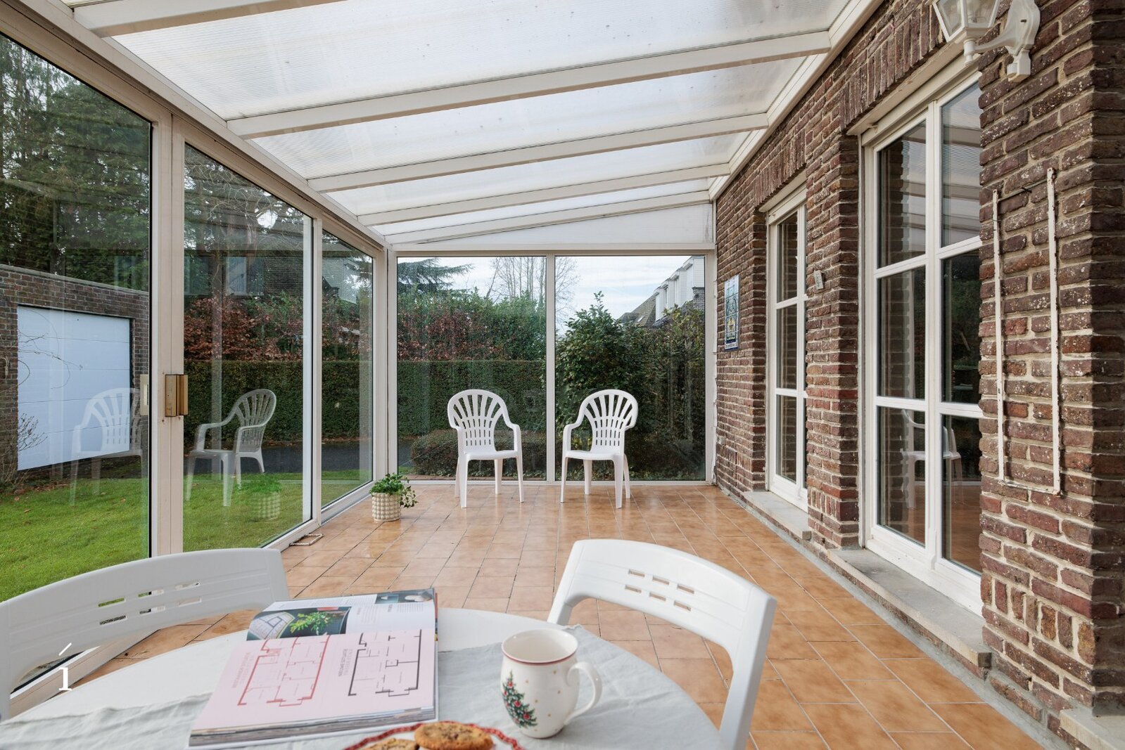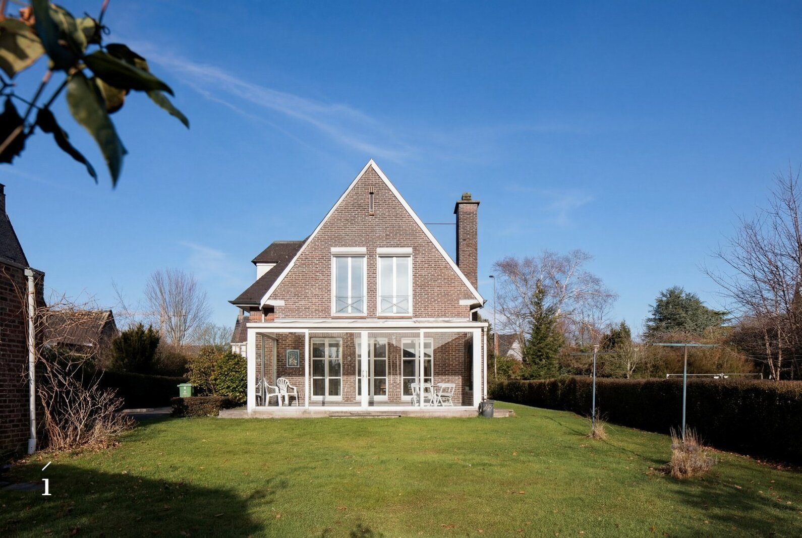De indeling is functioneel. Op het gelijkvloers verwelkomt de inkomhal met gastentoilet u in de woning. Verder vinden we een aparte keuken, een aangename leefruimte, een veranda met zicht op de tuin en een inpandige garage. Op de eerste verdieping bevinden zich drie volwaardige slaapkamers, die perfect kunnen worden heringedeeld naar vier slaapkamers, evenals een centrale badkamer.