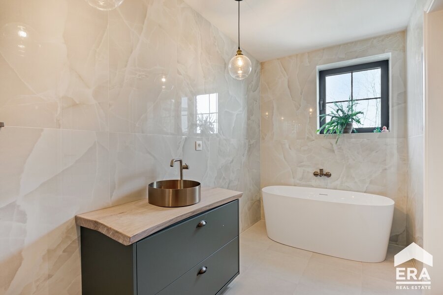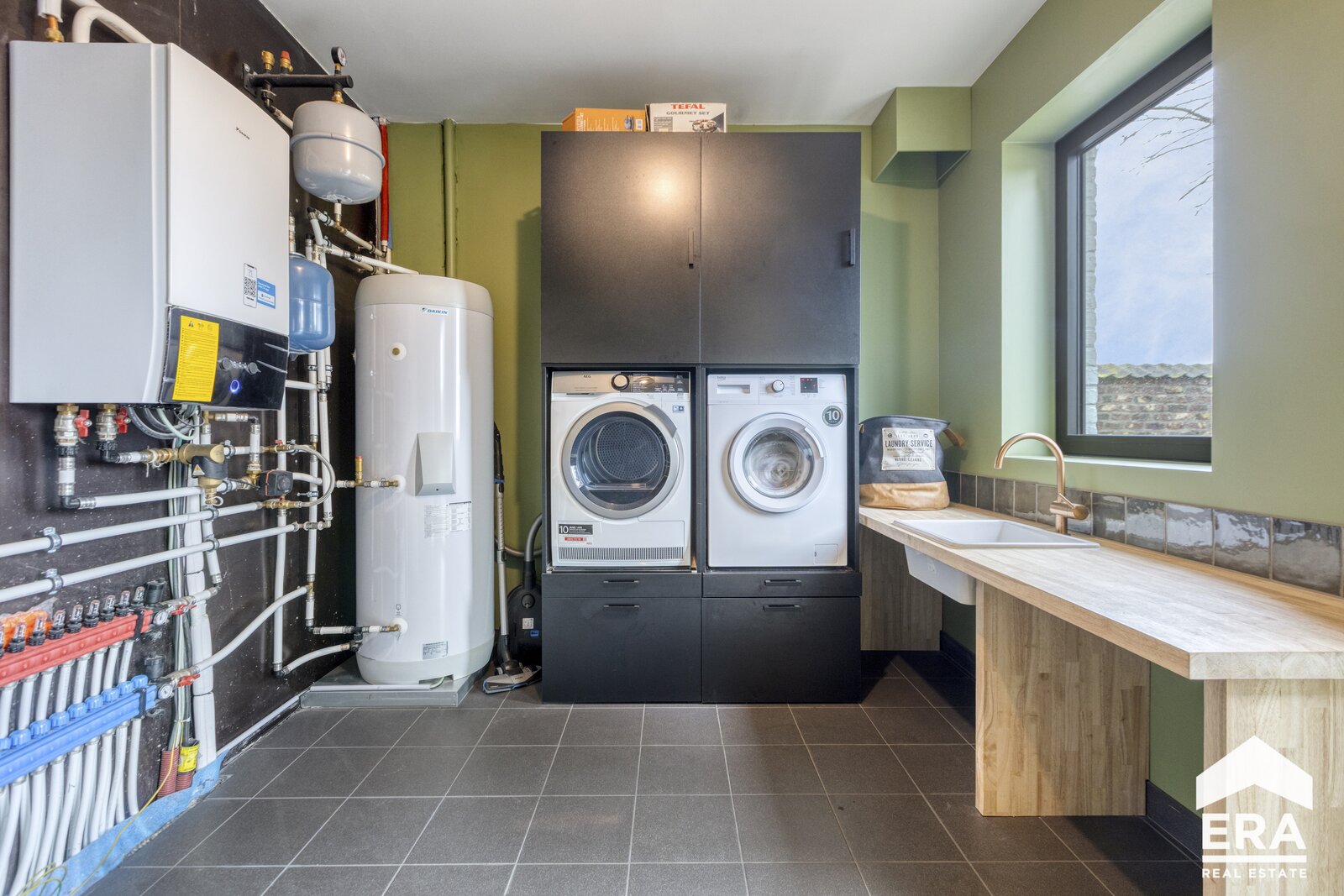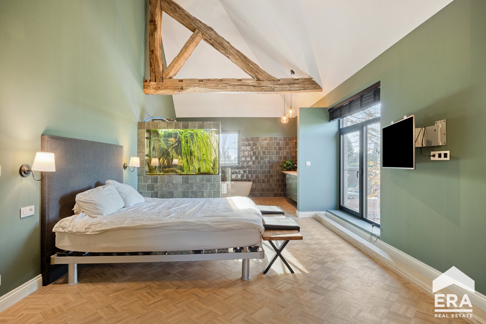 De villa kenmerkt zich door de hoogwaardige afwerking met o.a. oude Boomse pannen, eiken vloeren en gebakken kleiklinkers, .. De royale plafondhoogte van 2,8m op het gelijkvloers versterkt het gevoel van licht en luxe. De woning biedt 5 tot 6 slaapkamers, waaronder een zeer ruime hoofdslaapkamer met badkamer ensuite.