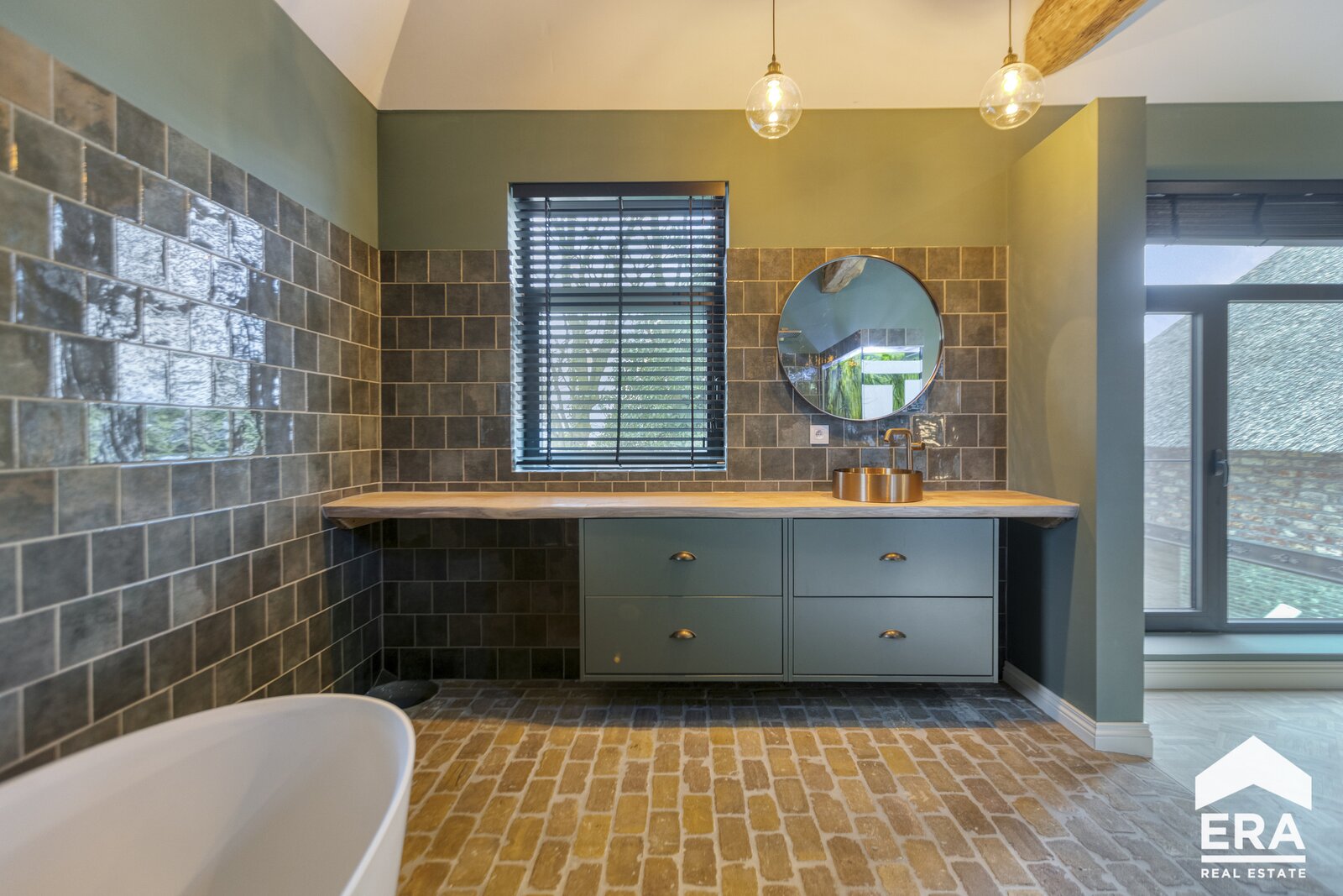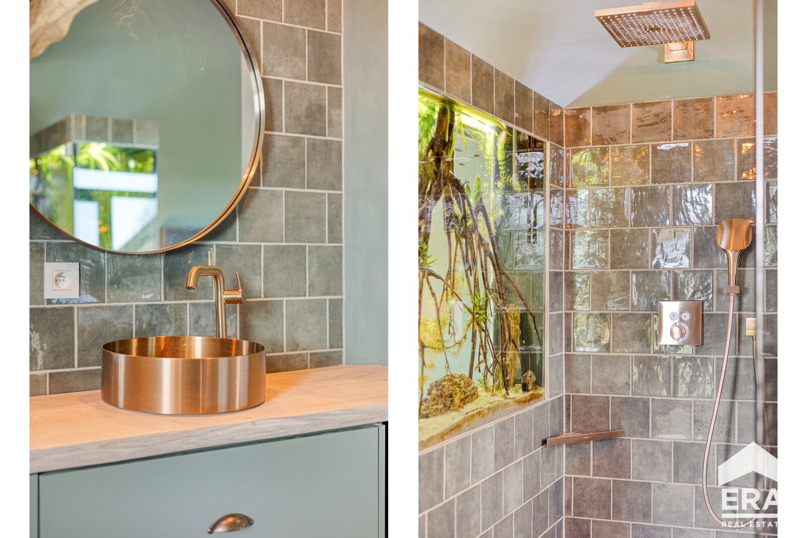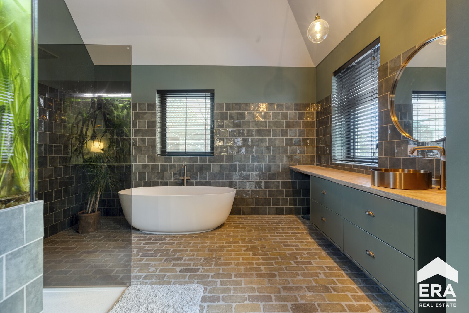 De villa kenmerkt zich door de hoogwaardige afwerking met o.a. oude Boomse pannen, eiken vloeren en gebakken kleiklinkers, .. De royale plafondhoogte van 2,8m op het gelijkvloers versterkt het gevoel van licht en luxe. De woning biedt 5 tot 6 slaapkamers, waaronder een zeer ruime hoofdslaapkamer met badkamer ensuite.
