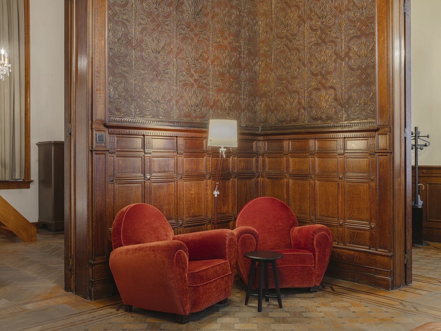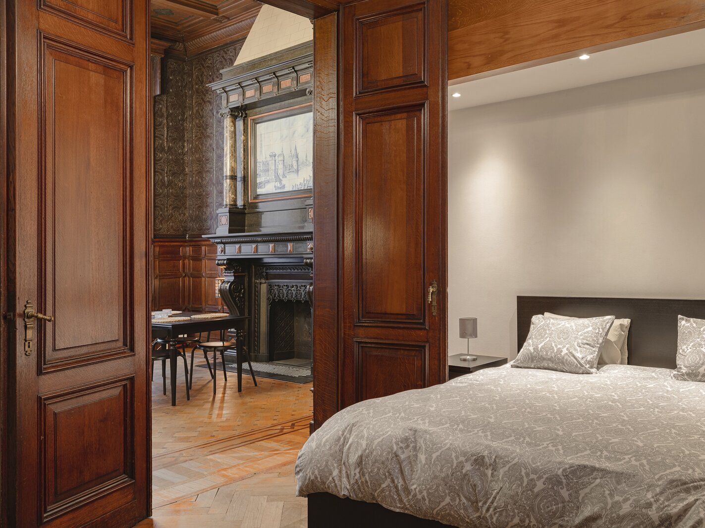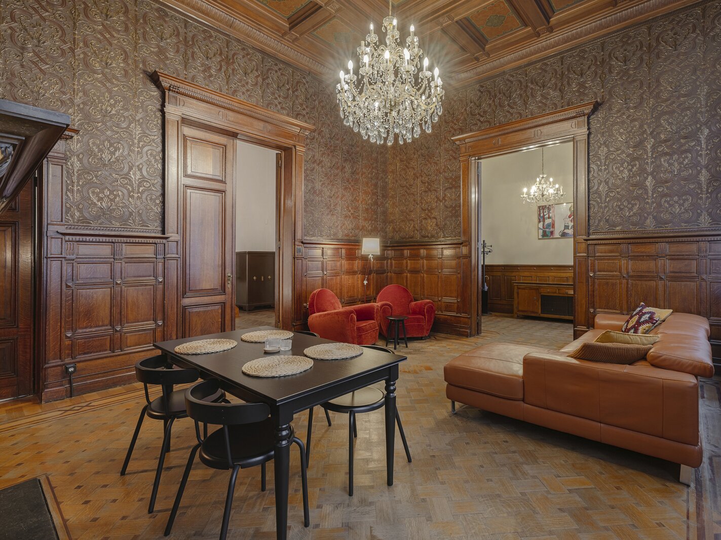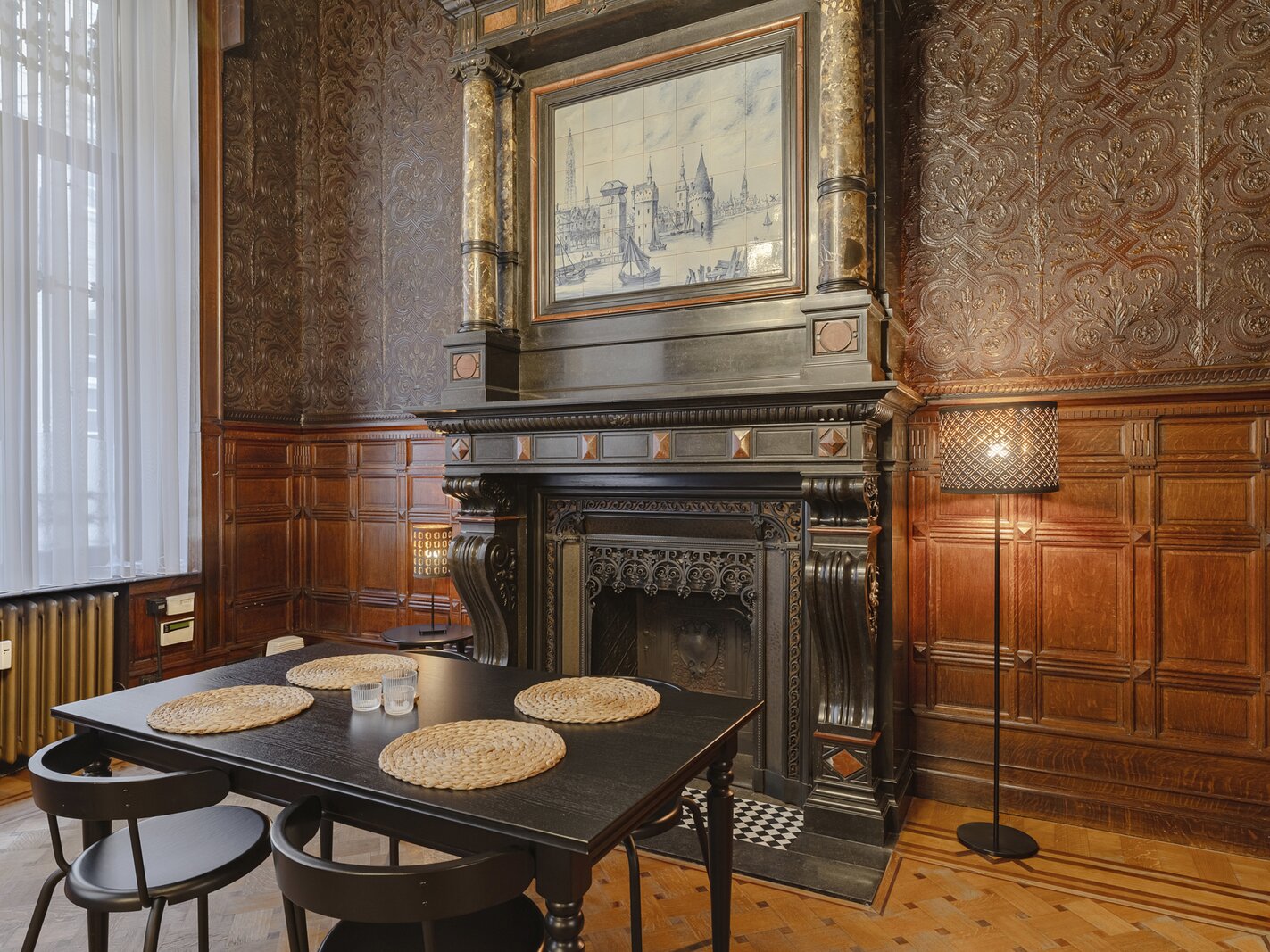 Appartement authentique meublé au rez-de-chaussée dans un palais urbain unique datant de 1892, situé au calme dans une rue sans issue, à côté de la magnifique Bourse rénovée, en plein centre historique d’Anvers, à deux pas du Meir.