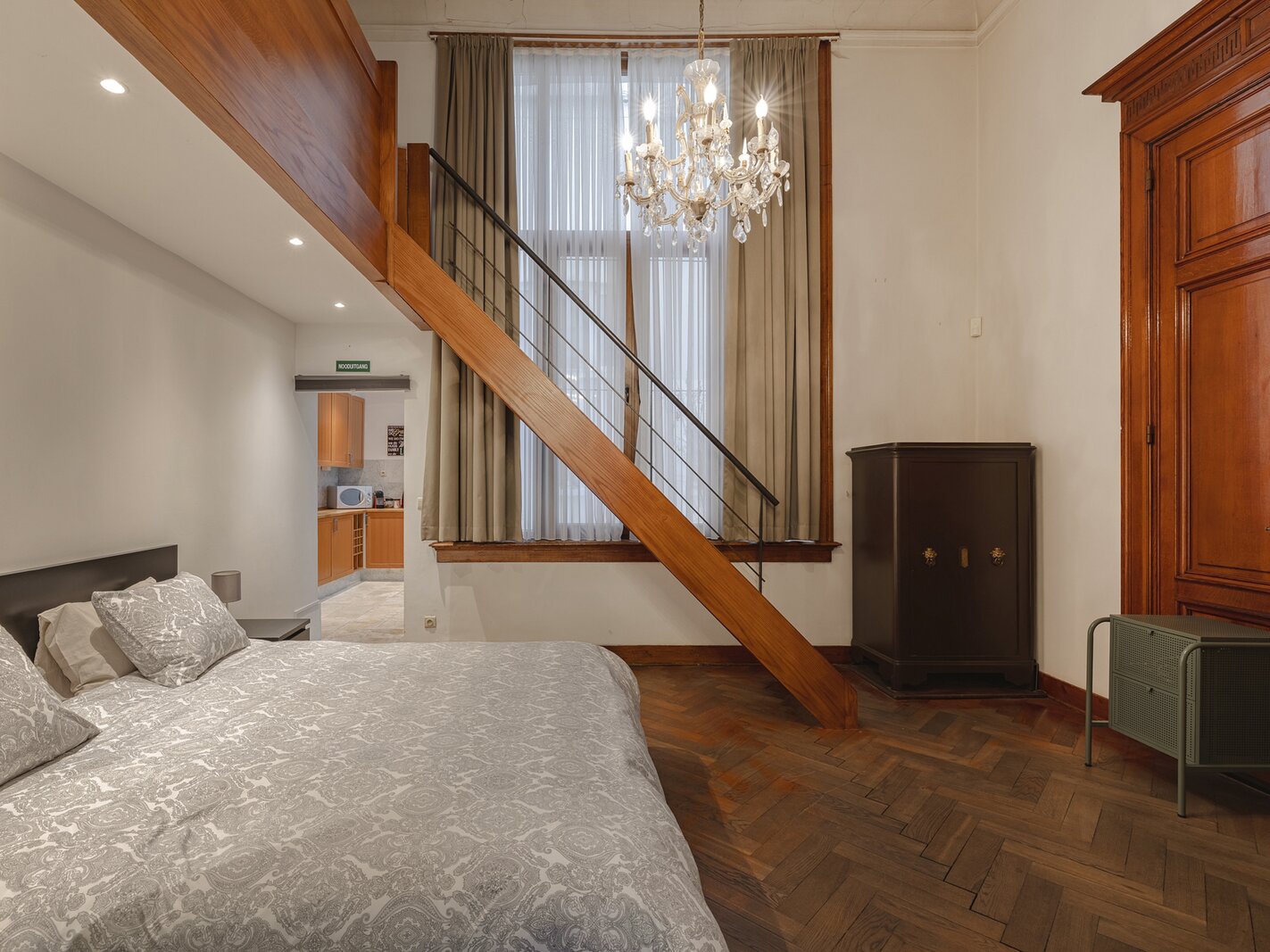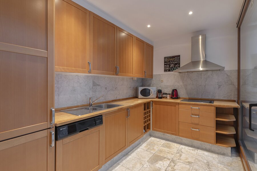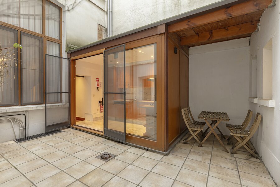 Ce joyau caché, doté de hauts plafonds, de belles moulures et de portes authentiques, confère à l’habitation une atmosphère particulièrement spacieuse et élégante. Depuis le vaste hall d’entrée, vous accédez à un agréable espace de vie plein de caractère. L’appartement dispose d’une chambre. La salle de bains se trouve à l’étage et est accessible par un escalier. On y trouve également une cuisine équipée avec accès à l’espace extérieur, ainsi qu’un WC séparé.