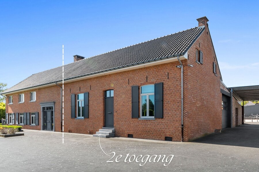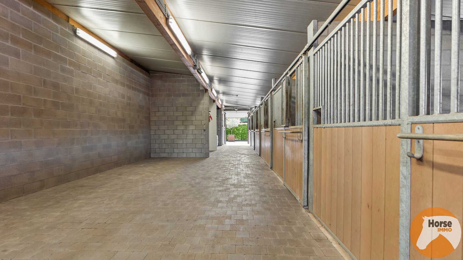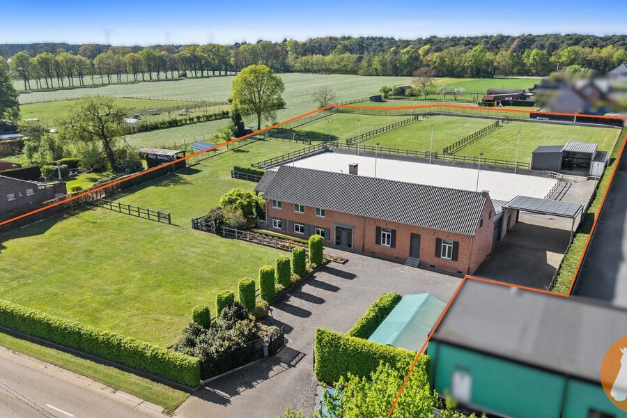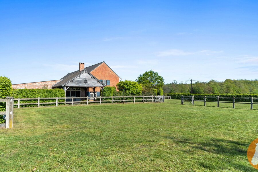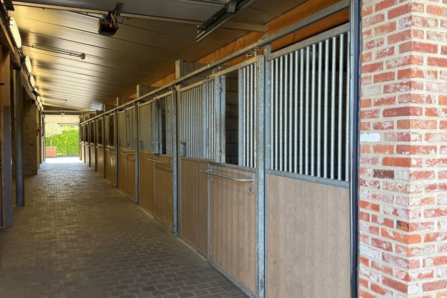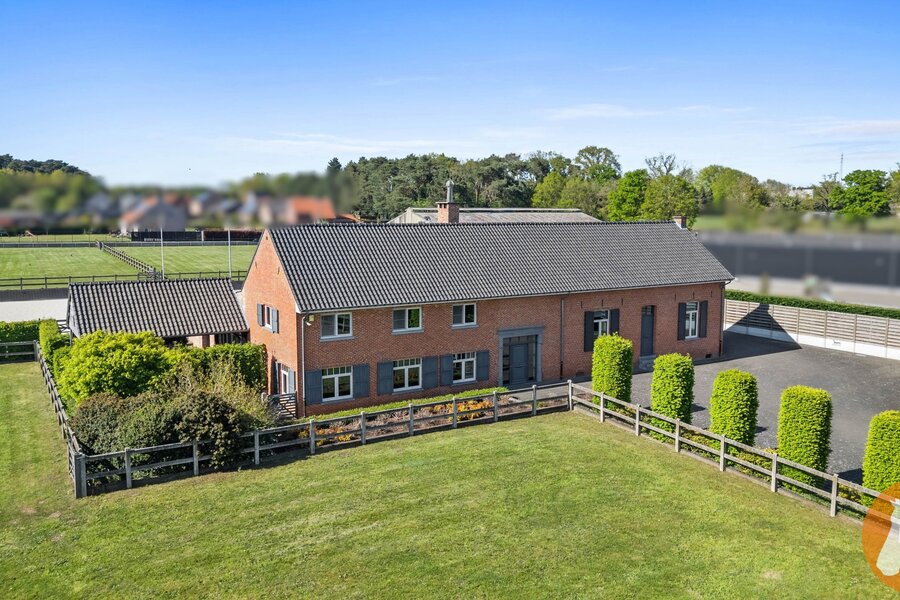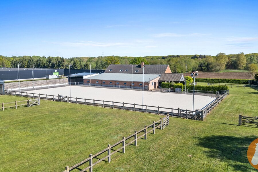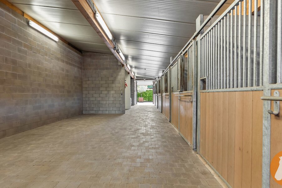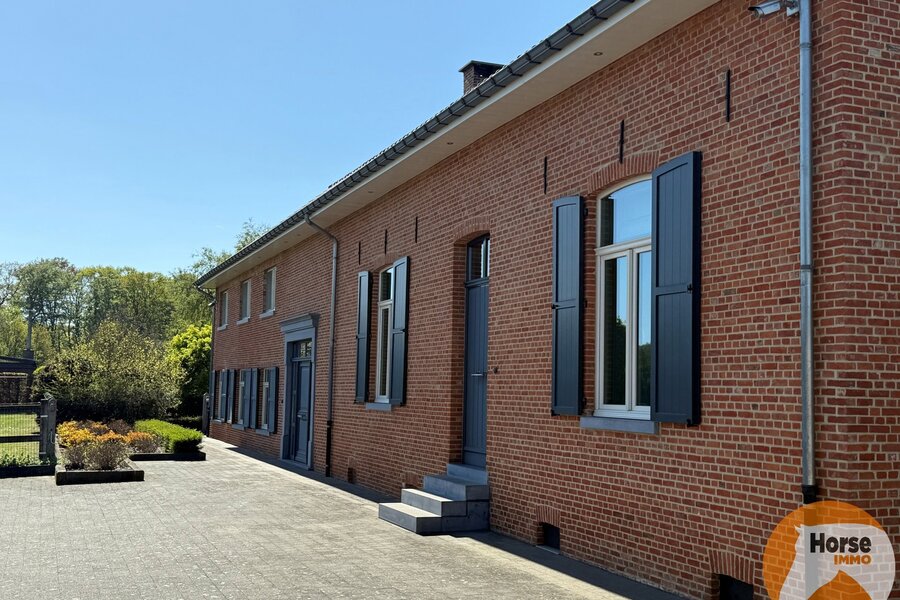 Deze statige hoeve onderging in 2008 een totaalrenovatie waarbij er veel aandacht werd besteed aan kwalitatieve materialen. De hoeve is zeer groot en omvat momenteel aan de linkerzijde het woongedeelte en aan de rechterzijde een 2e woongedeelte (momenteel kantoor). Direct aanpalend aan de achterzijde van de hoeve en met een directe toegang vanuit de woning werd er in 2008 een stalgebouw aangebouwd waarin diverse opslagruimtes en zadelkamer, een wasplaats met solarium en 8 nette paardenboxen. Er is tevens ruimte om nog 4 bijkomende boxen te plaatsen in dit gebouw alsook treffen we hier nog een zeer praktisch garage met hoge poort.