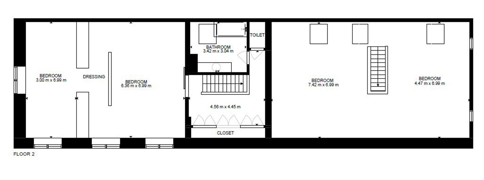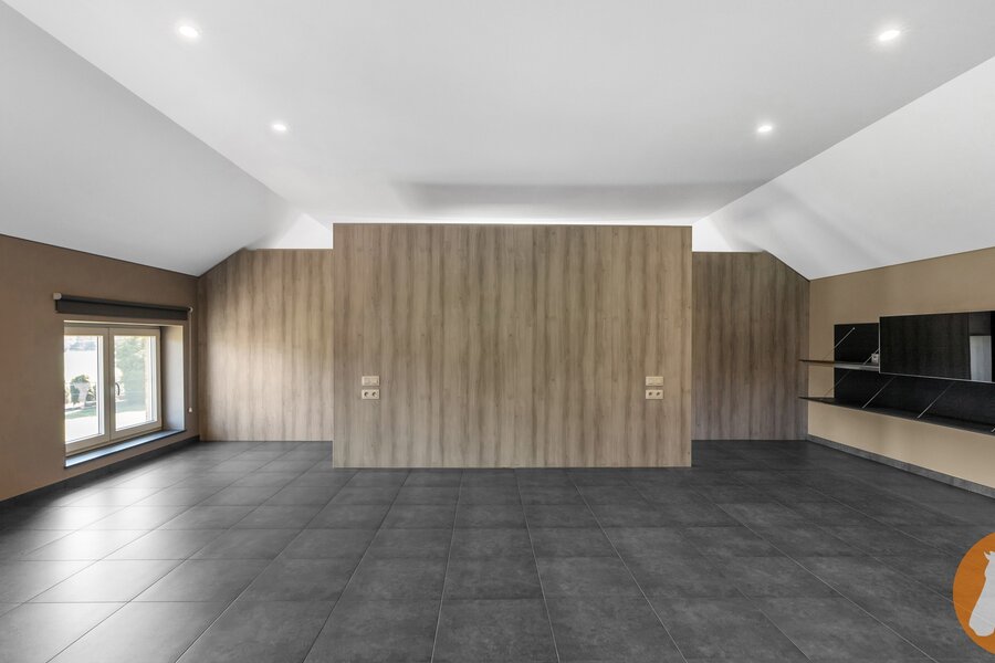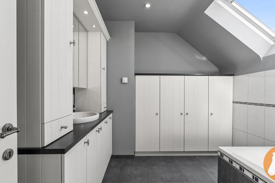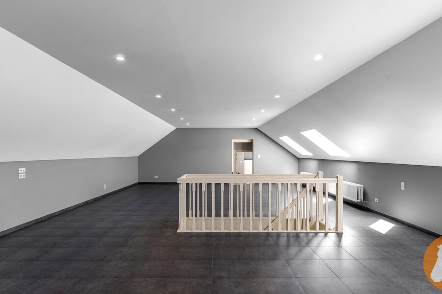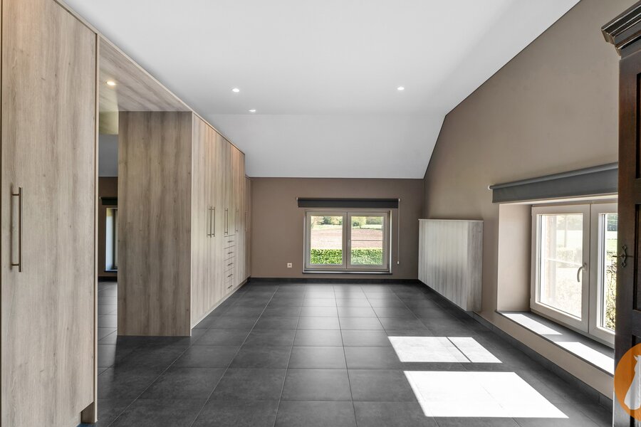 Op de eerste verdieping treffen 2 dressings en enorm ruime slaapkamers waar zeer eenvoudig meerdere kamers kunnen gecreëerd worden.