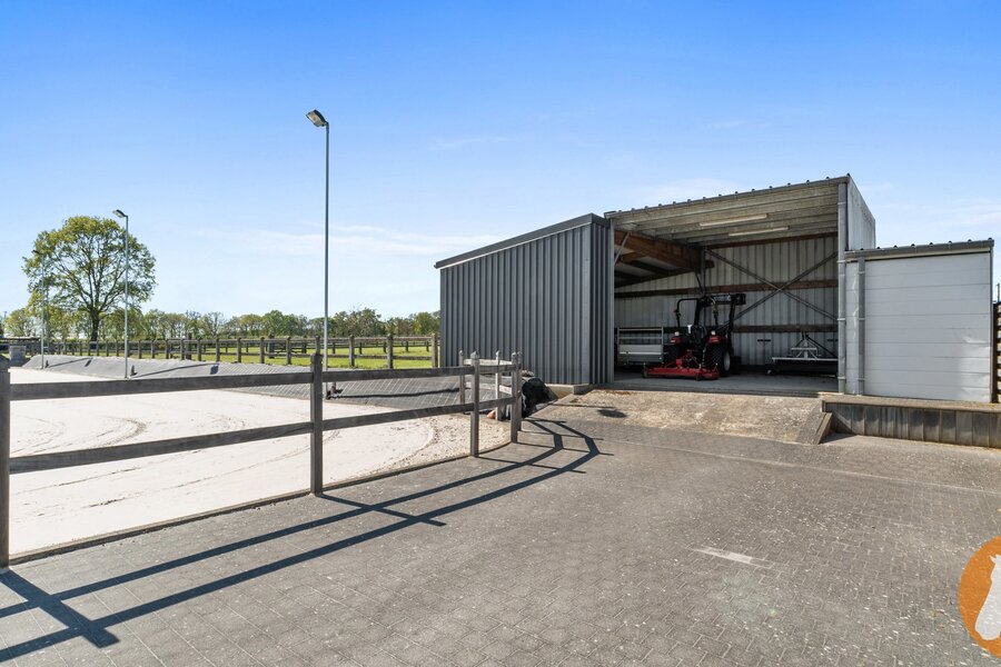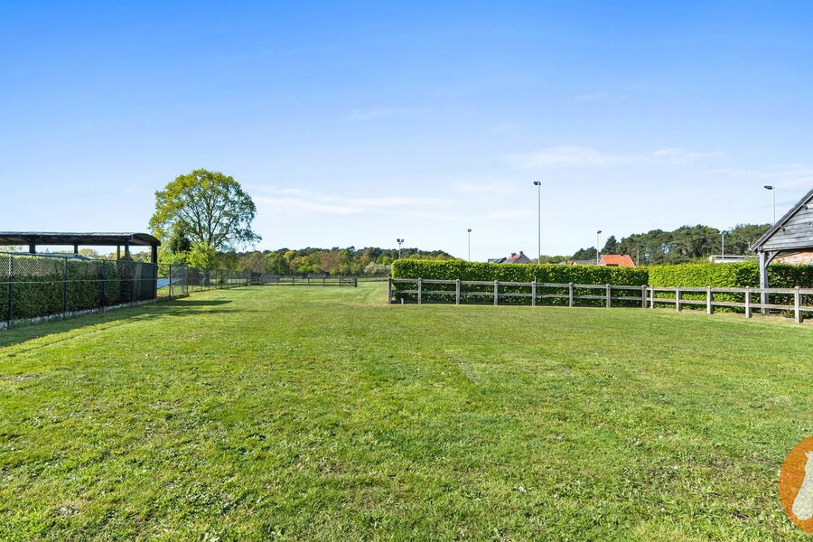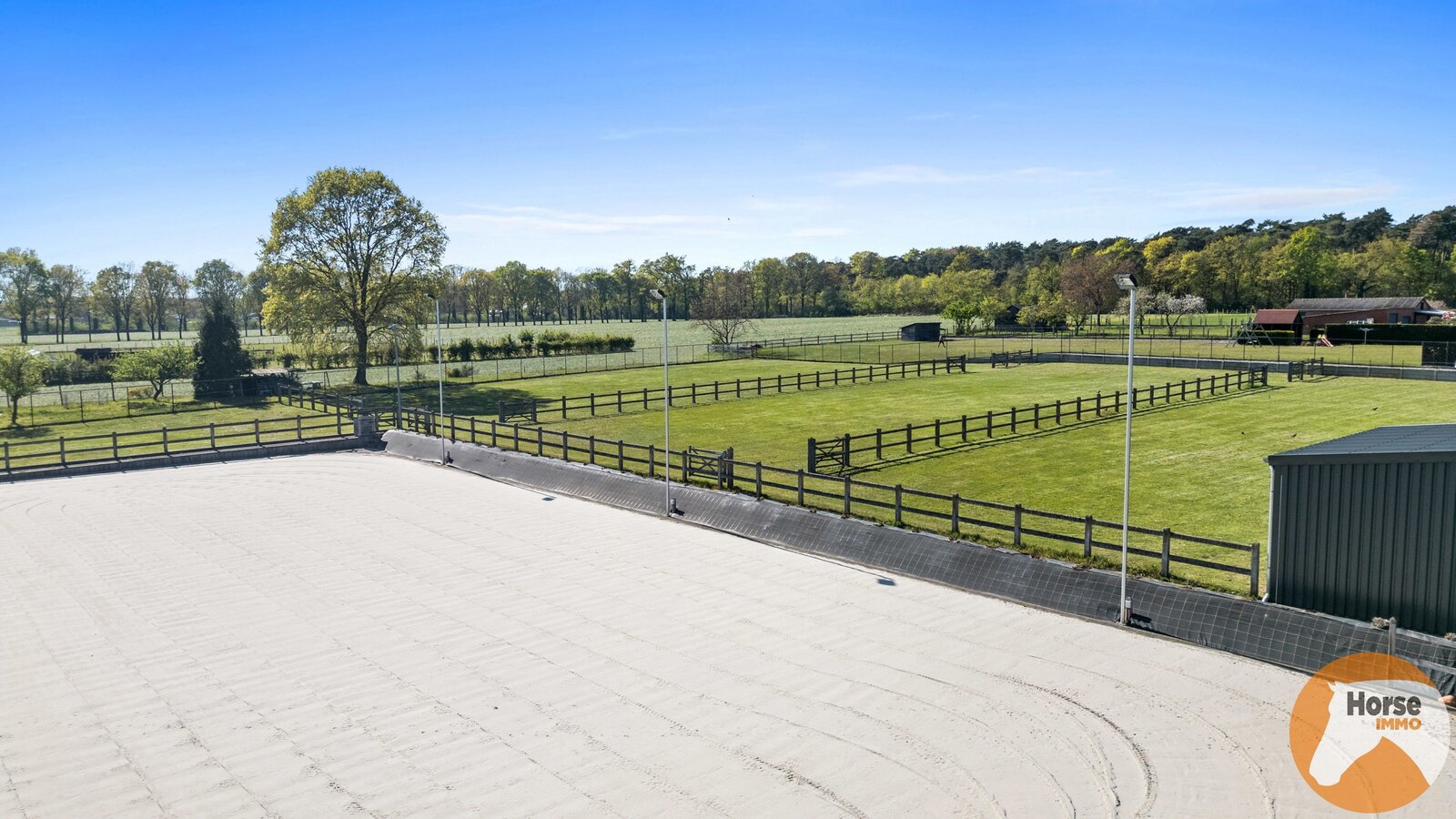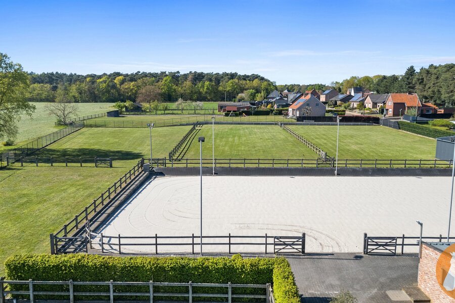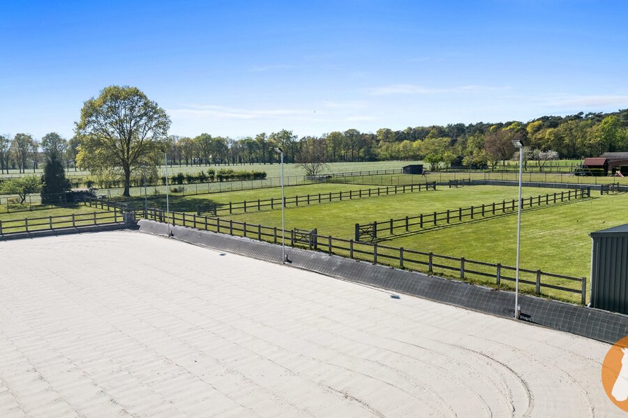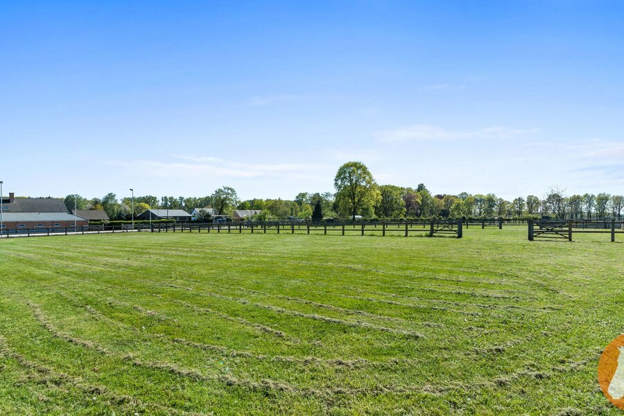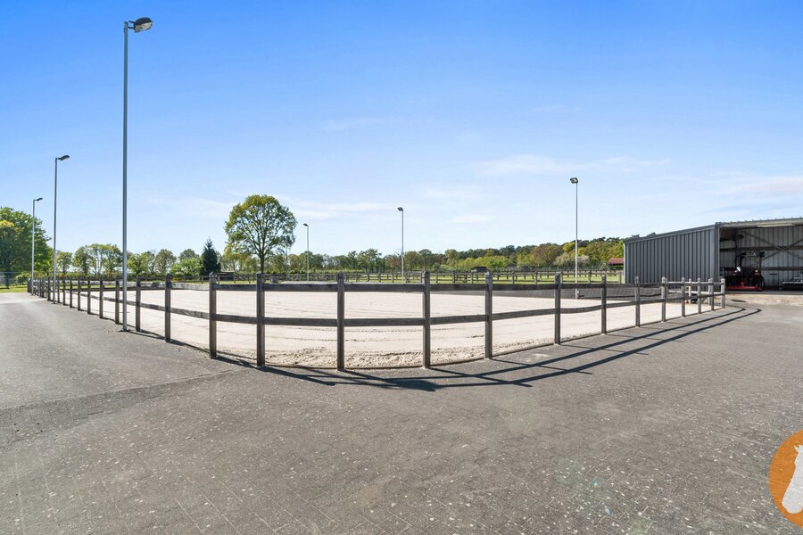 De eb en vloed piste heeft een afmeting van 25m x 50m en is voorzien van de nodige verlichting. Er zijn nog 5 weides voorzien van houten omheining.