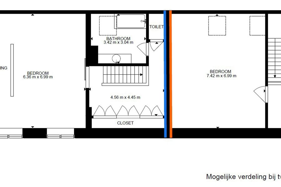 Dankzij de 2 huisnummers, 2 toegangen, 2 trappen, enz ... kan deze woning perfect dienen als kangoeroewoning. Zie ook plannen.