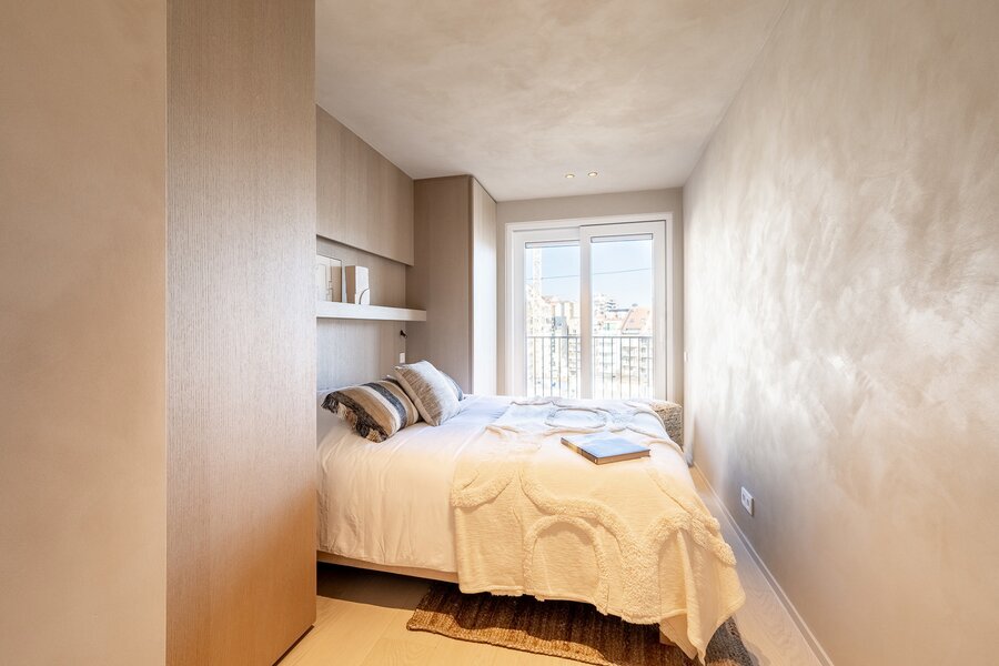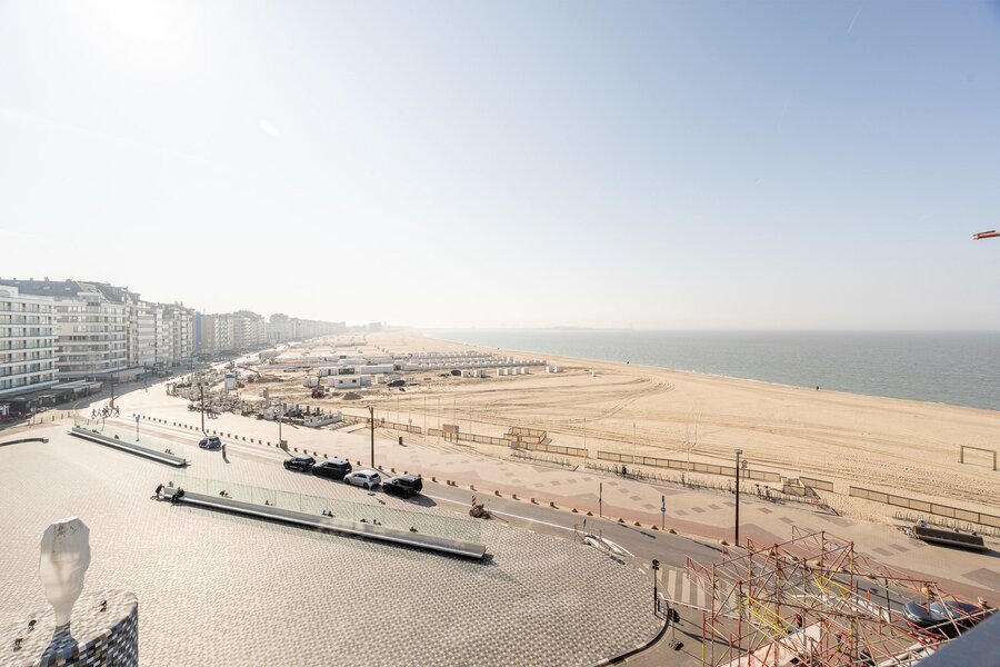 En vente exclusive : Appartement de rêve avec vue panoramique sur la mer et superbes terrasses à l'avant et à l'arrière, situé au 5ème étage de la prestigieuse résidence « Sunny Beach » sur la place Rubensplein. Agencement : hall d'entrée avec vestiaire et WC, cuisine ouverte avec coin repas et séjour/salon donnant sur une terrasse offrant une vue imprenable sur la plage et la mer. 3 chambres et 3 salles de bains, WC séparés. Local à vélos au rez-de-chaussée. Possibilité d'acheter ou de louer un garage dans le quartier. DPE : 96 kWh/m²/an.