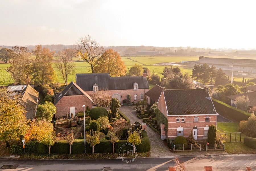 Het geheel rust op een uitzonderlijk perceel van bijna 13.000 m², inclusief een achterliggende weide — ideaal voor dierenliefhebbers of wie houdt van ruimte en privacy. Bovendien behoren een grote schuur en twee vooraan gelegen bouwgronden met af te breken woning tot de eigendom.
