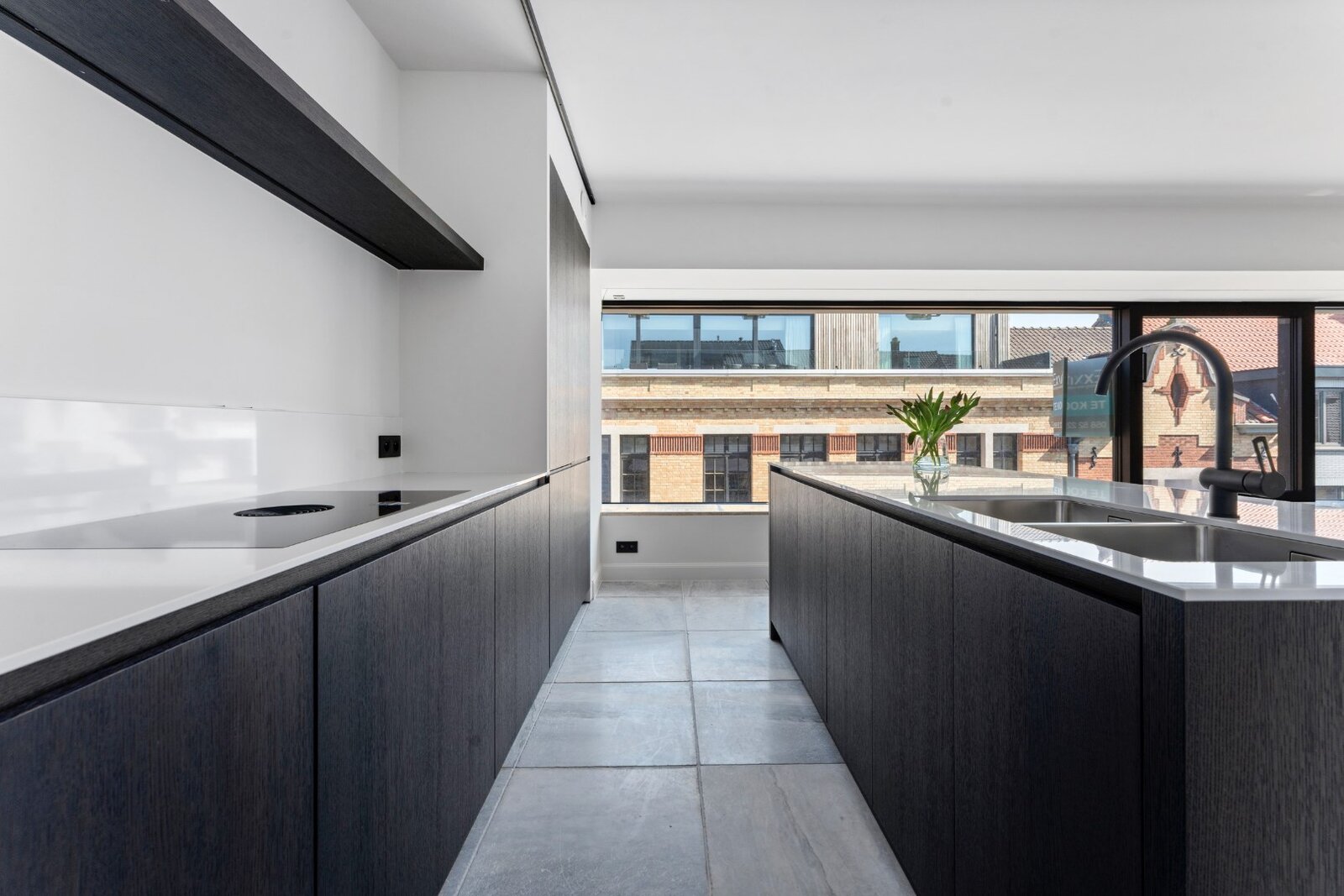 Cherchez-vous un magnifique appartement avec beaucoup de lumière naturelle et fini avec des matériaux coûteux tels que la pierre naturelle et le parquet? Venez donc jeter un coup d'œil à cet appartement. Il dispose d'un hall d'entrée spacieux, d'un salon confortable avec de grandes baies vitrées et une grande cheminée au gaz, d'une cuisine ouverte moderne avec un grand îlot de cuisson et à côté de la cuisine un débarras pratique. De plus, il y a deux chambres très spacieuses, une belle salle de bains avec douche à l'italienne, une double vasque sur mesure et des toilettes séparées. Tout au long de la propriété, du parquet et différents types de pierre naturelle ont été utilisés, créant ainsi une sensation de raffinement et de luxe. Cerise sur le gâteau, cet appartement dispose d'une belle terrasse spacieuse. Chaque appartement dispose d'une cave privative et d'une place de parking facilement accessible dans le garage commun.