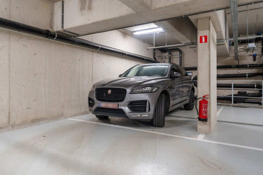 De parking bereik je heel makkelijk via de kleine ring of via de Koning Boudewijnlaan. Het betreft een gedeelte van de Q-parking wat enkel toegankelijk is voor bewoners van de residentie.