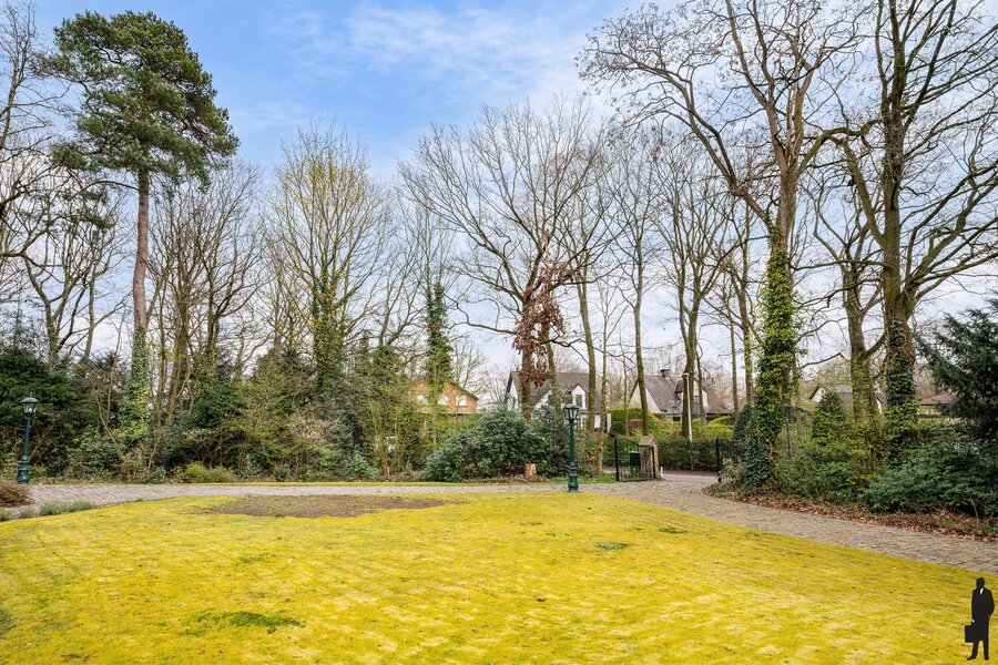 De woning is gelegen op een perceel met toegangspoort en kassei-oprit. De tuin is groen en privatief aangelegd en beschikt over een vijver, terras, overdekt terras en tuinberging. Aansluitend geniet u van een bosrijke omgeving met veel rust en privacy.