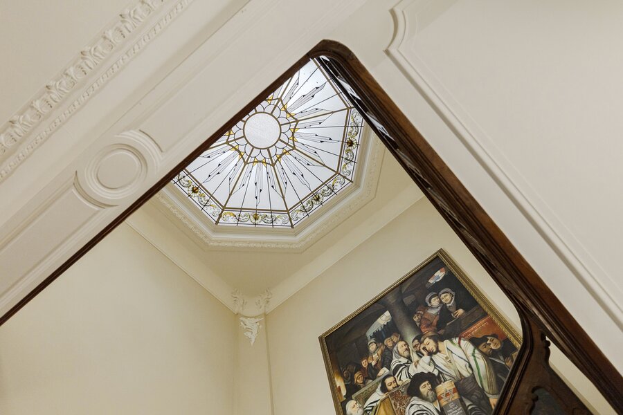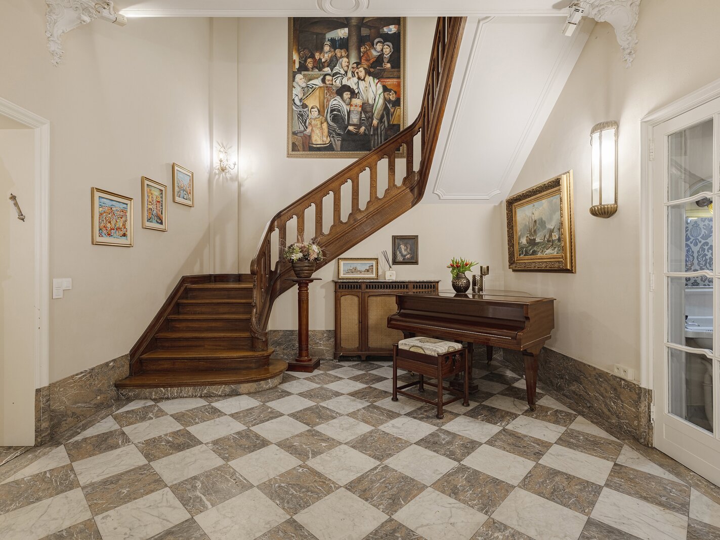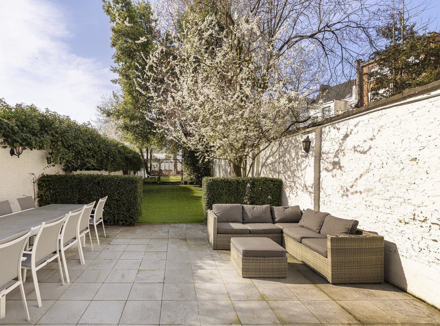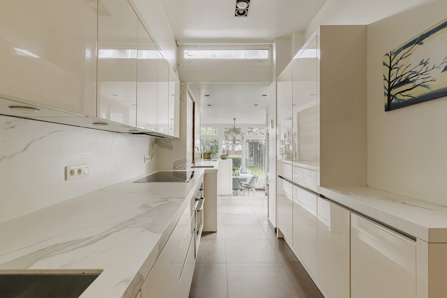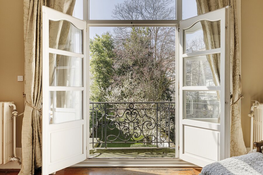 Cette charmante maison de maître vous accueille via un hall d’entrée élégant, doté d’un magnifique escalier en bois, de hauts plafonds, de moulures raffinées et d’une verrière qui apporte une sensation exceptionnelle d’espace et de lumière. Au rez‑de‑chaussée se trouvent la cuisine avec un coin salon convivial et un accès direct à la terrasse ainsi qu’au jardin ensoleillé. On y trouve également un salon chaleureux, idéal comme espace de vie ou de réception.