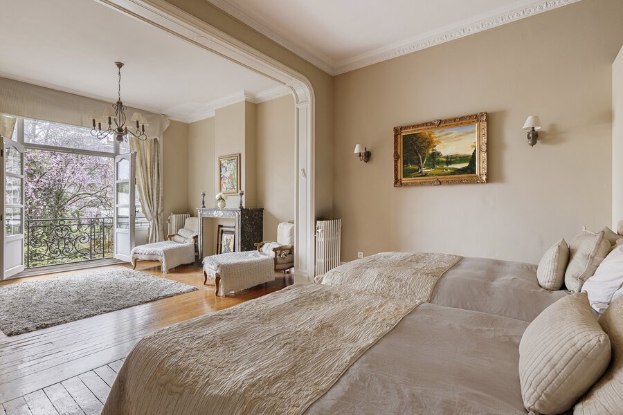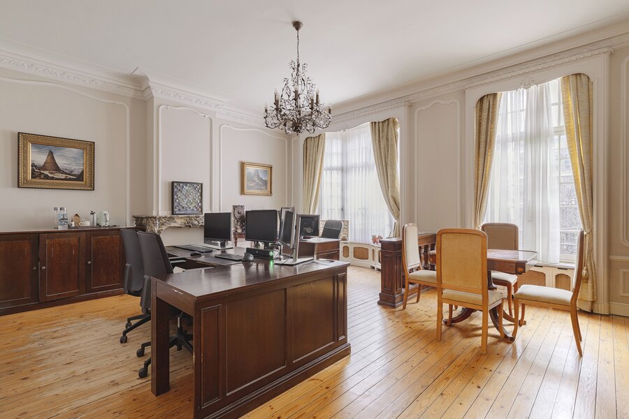 Le premier étage se distingue par ses portes authentiques et ses superbes éléments d’origine. Il comprend une vaste suite parentale avec dressing et une grande salle de bains. Une grande pièce de vie, actuellement aménagée en bureau, complète cet étage.