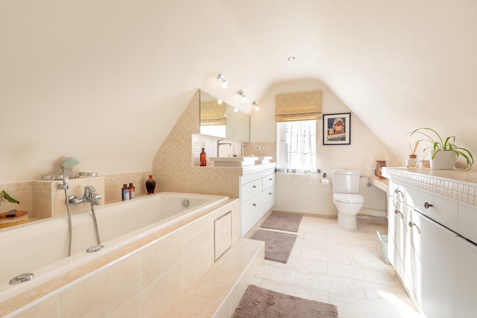 Andere praktische troeven zijn de dubbele garage en de droge kelderruimte. De villa heeft een zeer solide basis, maar dient energetisch opgewaardeerd te worden. Dit biedt nieuwe eigenaars de kans om de villa naar eigen smaak te moderniseren en te verduurzamen, met respect voor de bestaande charme.