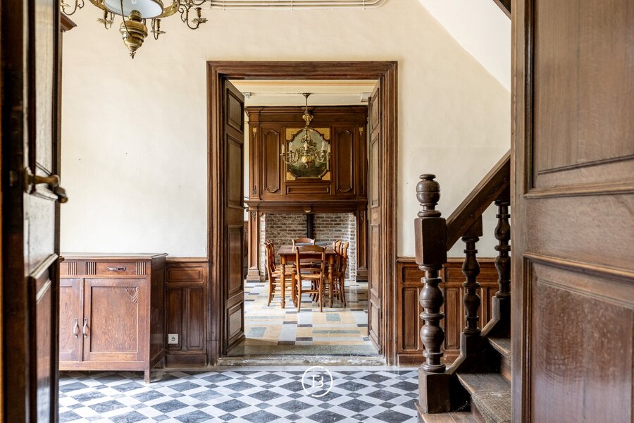 Dès l'entrée, le hall d'entrée spacieux, avec ses sols en marbre et ses deux élégants salons, chacun avec son propre charme et son ameublement historique, est immédiatement remarquable. Ensuite, nous trouvons un salon spacieux, une salle à manger séparée et une cuisine donnant sur le parc verdoyant. Ces espaces de plain-pied offrent non seulement un confort, mais aussi de nombreuses possibilités pour ceux qui souhaitent combiner travail et vie privée ou recherchent une utilisation polyvalente. Au premier étage, il y a de l'espace pour aménager plusieurs chambres spacieuses et salles de bains. L'étage intermédiaire et le grenier offrent un potentiel supplémentaire pour une expansion ou une réaffectation créative.