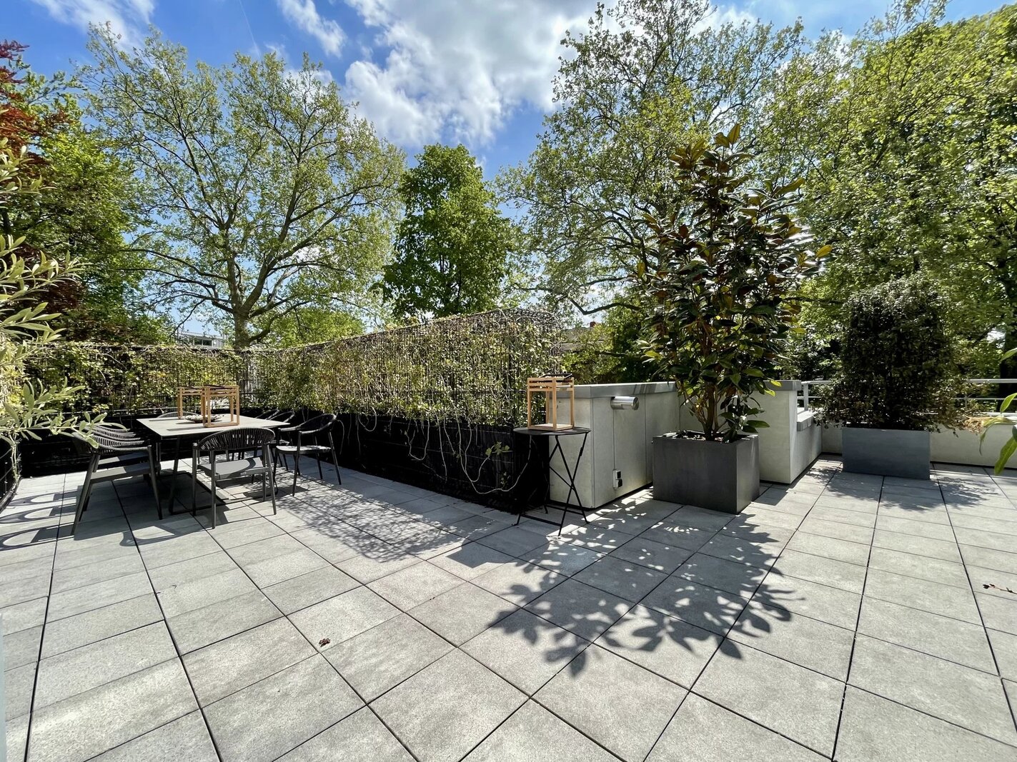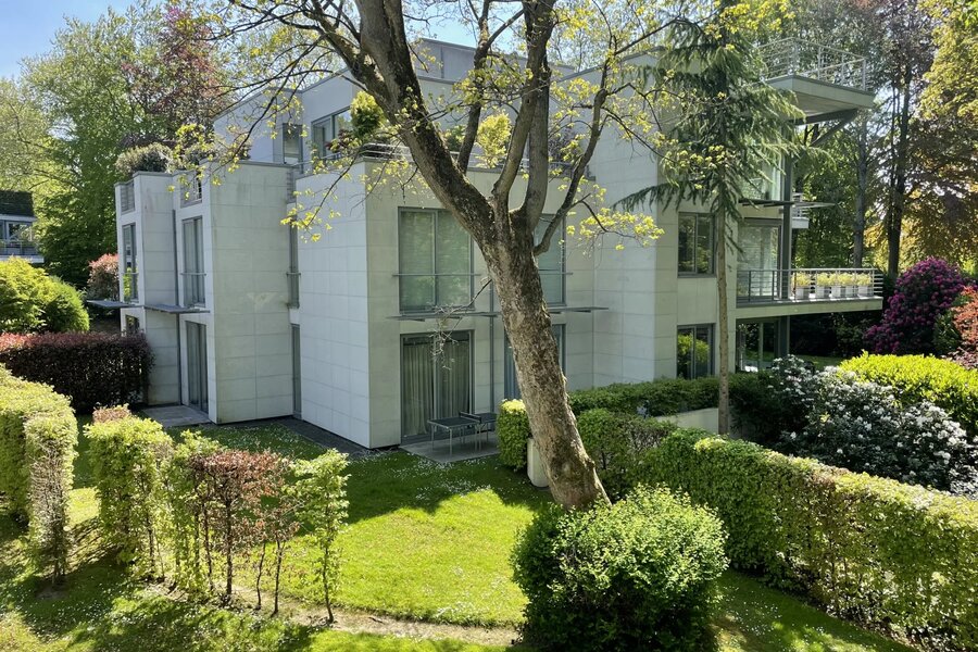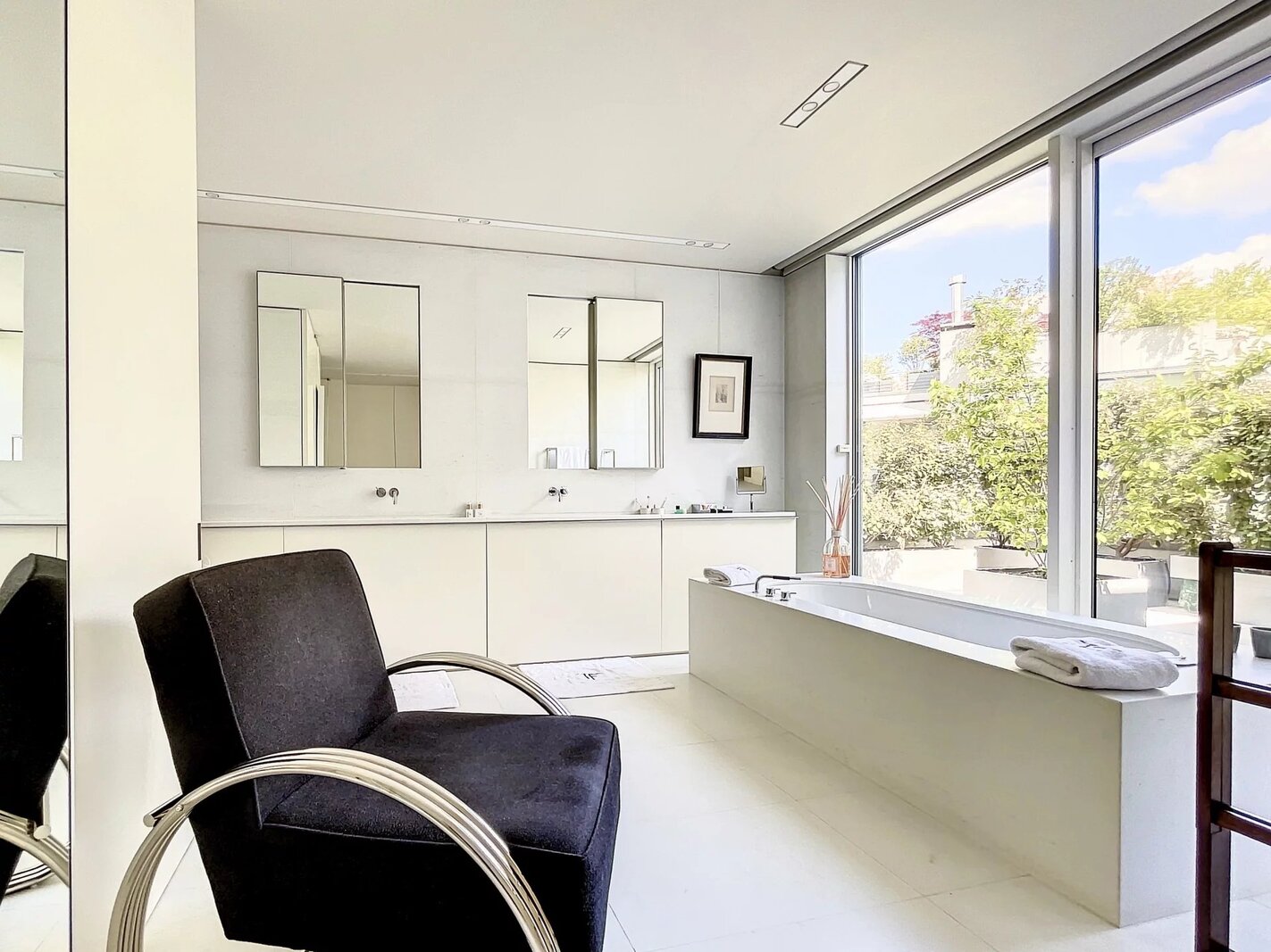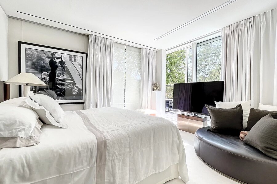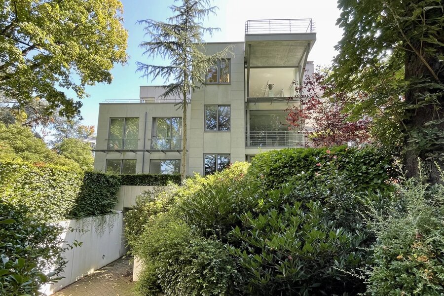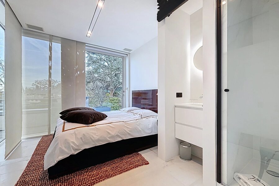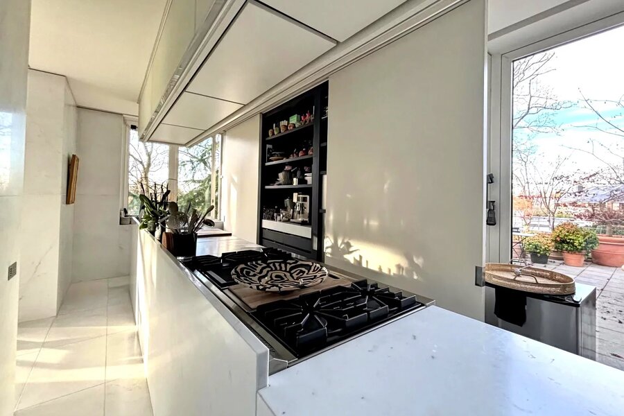 Extraordinaire et très exclusif Penthouse avec grandes baies vitrées et vue sur les arbres.