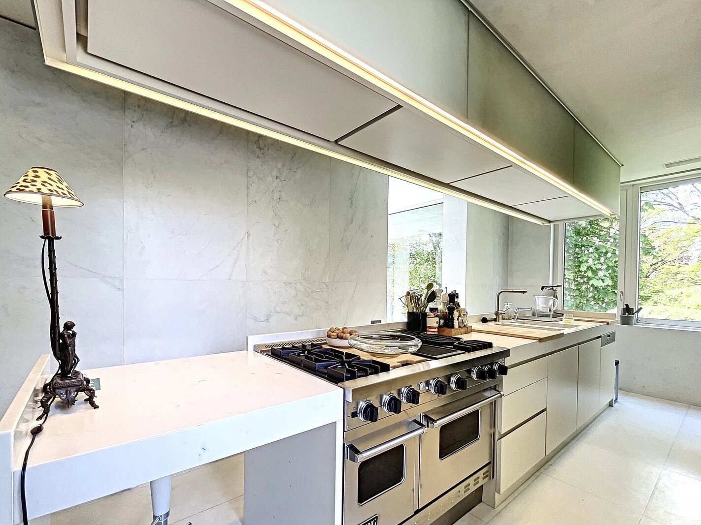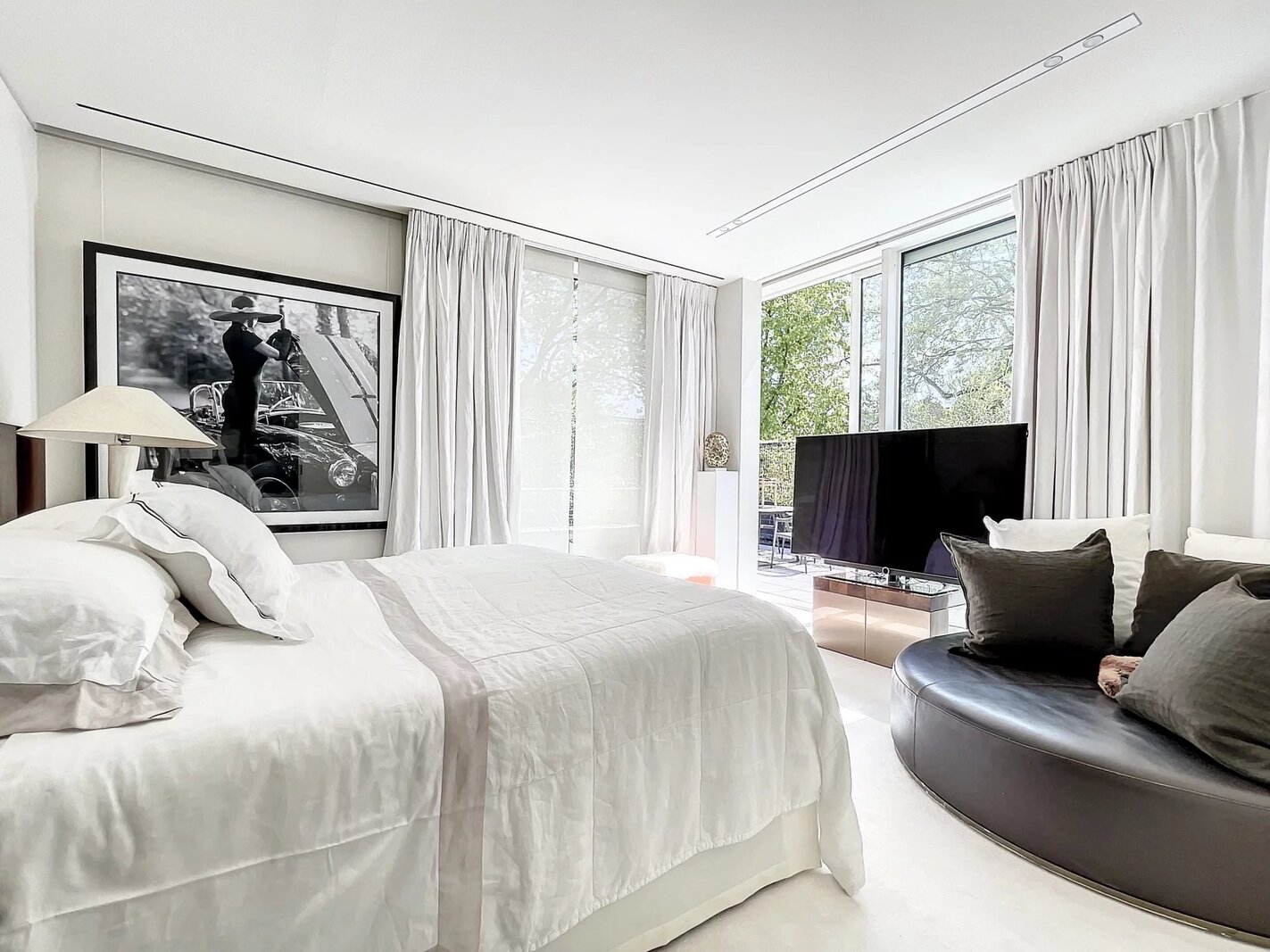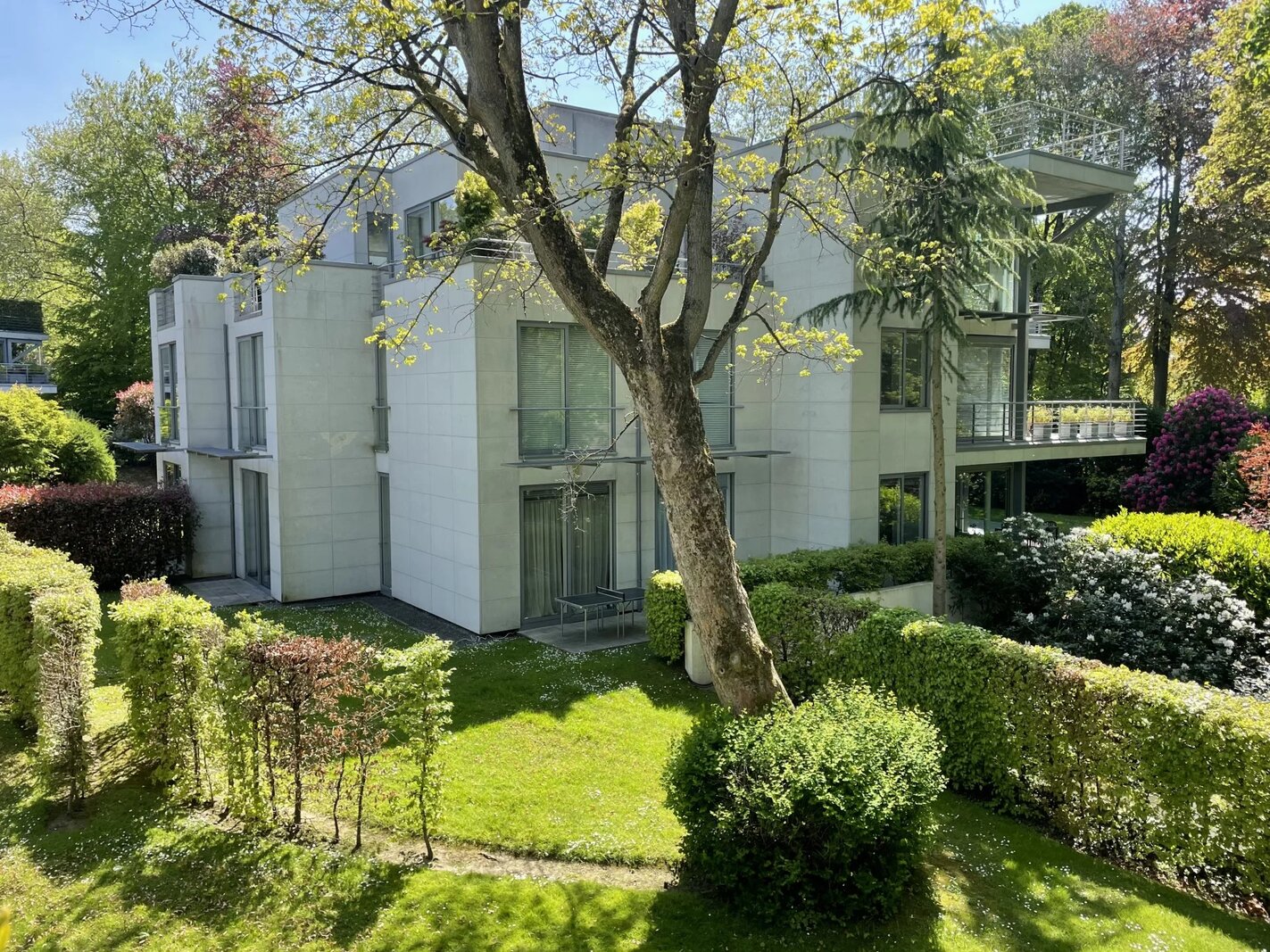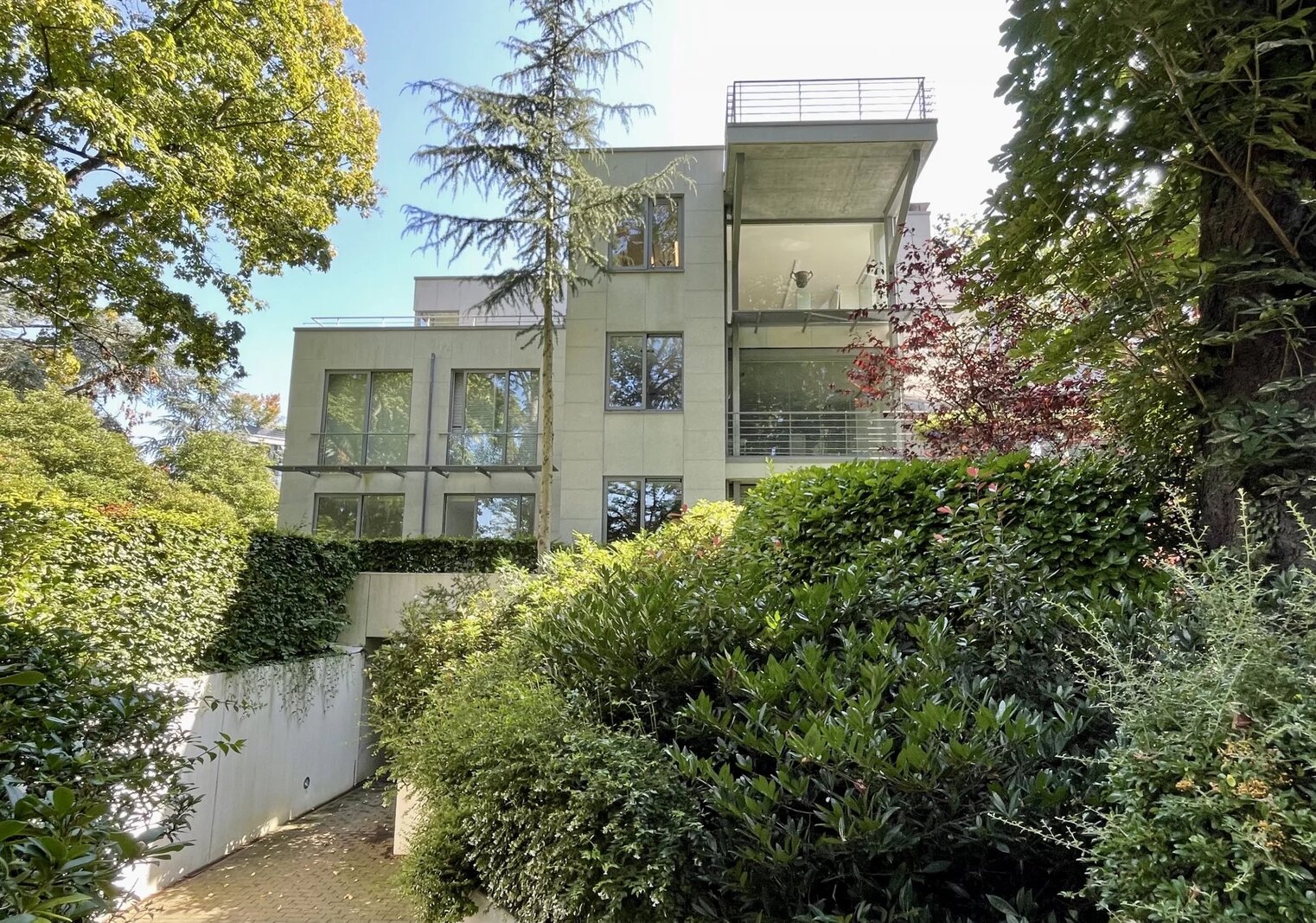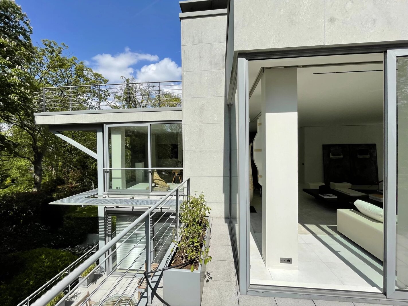 Extraordinaire et très exclusif Penthouse avec grandes baies vitrées et vue sur les arbres.