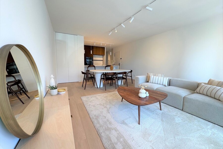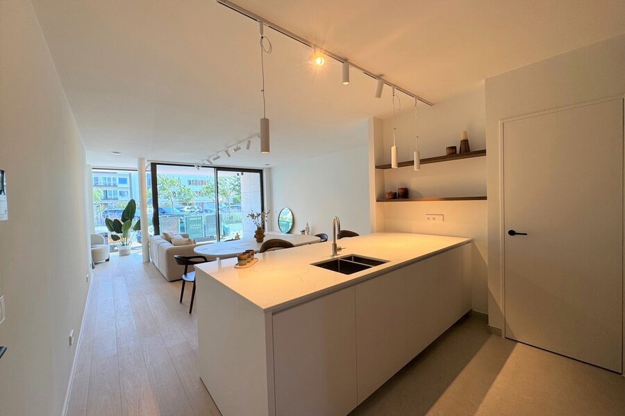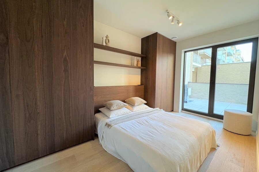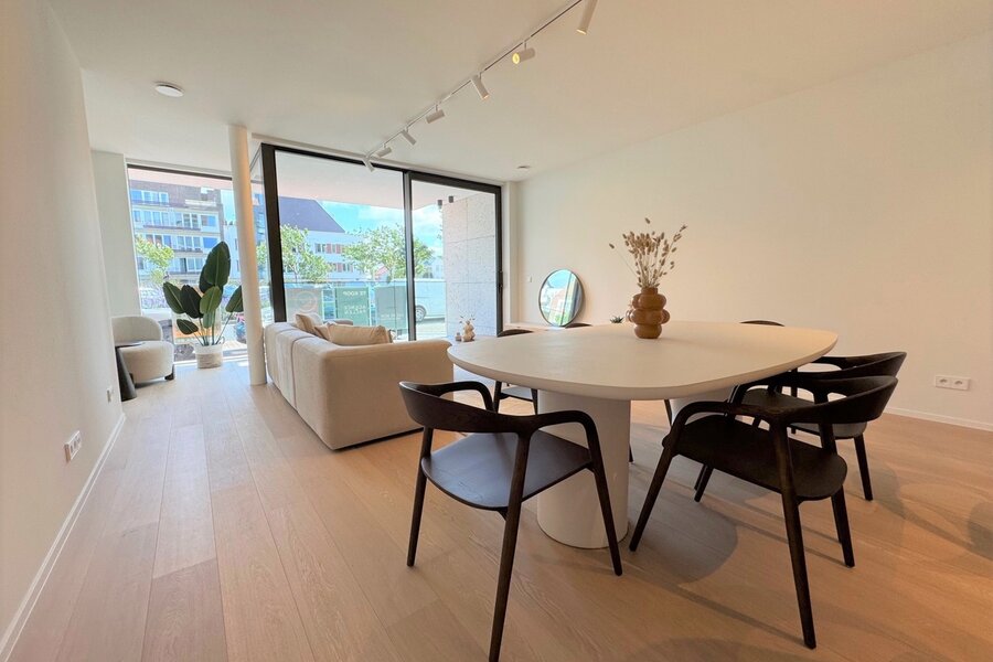 Appartement de luxe au réz-de-chaussée du nouveau projet « South View ». Composition. Hall d’entrée, vestiaire et wc. Vaste séjour avec terrasse orientée au Sud. Cuisine américaine bien équipée. 3 Chambres à coucher, salle de bains et salle de douche. Débarras/buanderie. 2ème terrasse à l’arrière de la résidence. Local à vélos commun. La résidence South View se trouve au Abrahams Hansplein à courte distance de la mer, l’avenue Lippens, Zegemeer et le Casino. Visites volontiers après rendez-vous en un de nos bureaux.