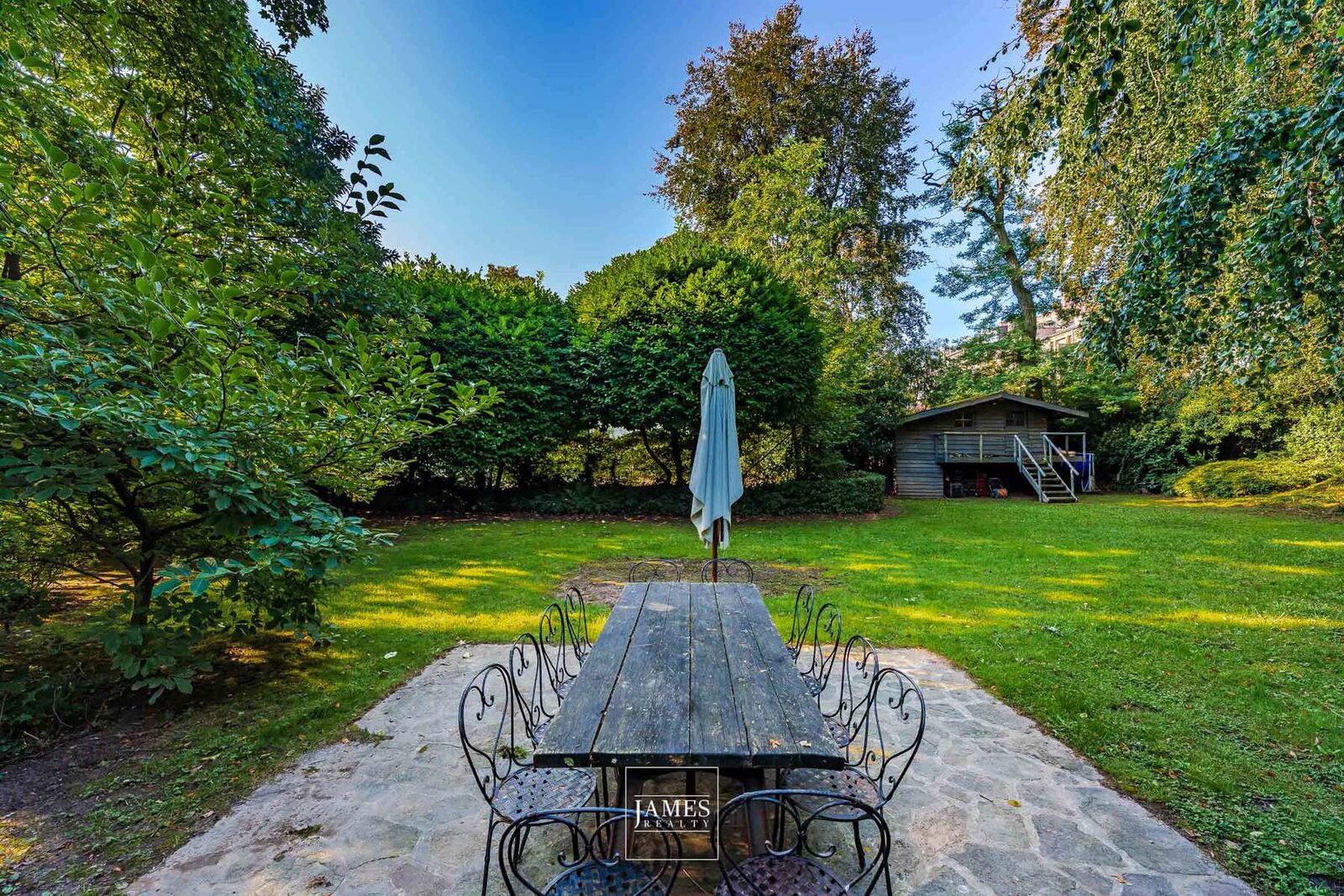 Le jardin, exceptionnel pour la ville, est accessible depuis l’avenue Brugmann et l’avenue Franz Merjay. Plusieurs parkings extérieurs et un garage pour deux voitures complètent ce bien.
