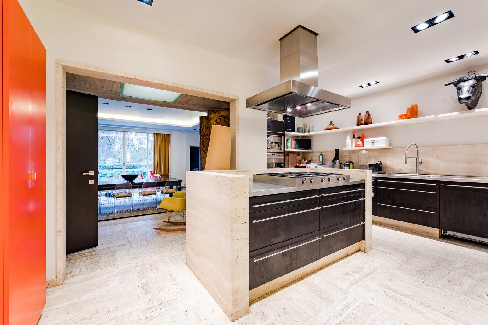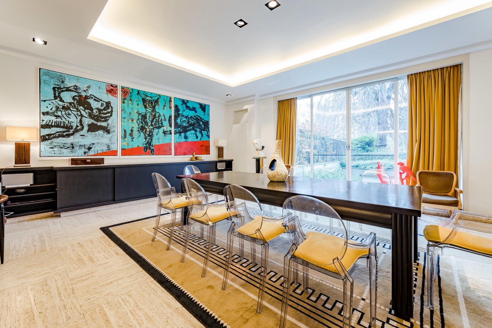 L'ensemble, facilement réunissable, pourrait redevenir une grande maison familiale avec réceptions, chambres en suite, bureaux et cuisine dînatoire ou continuer à être utilisé tel quel.