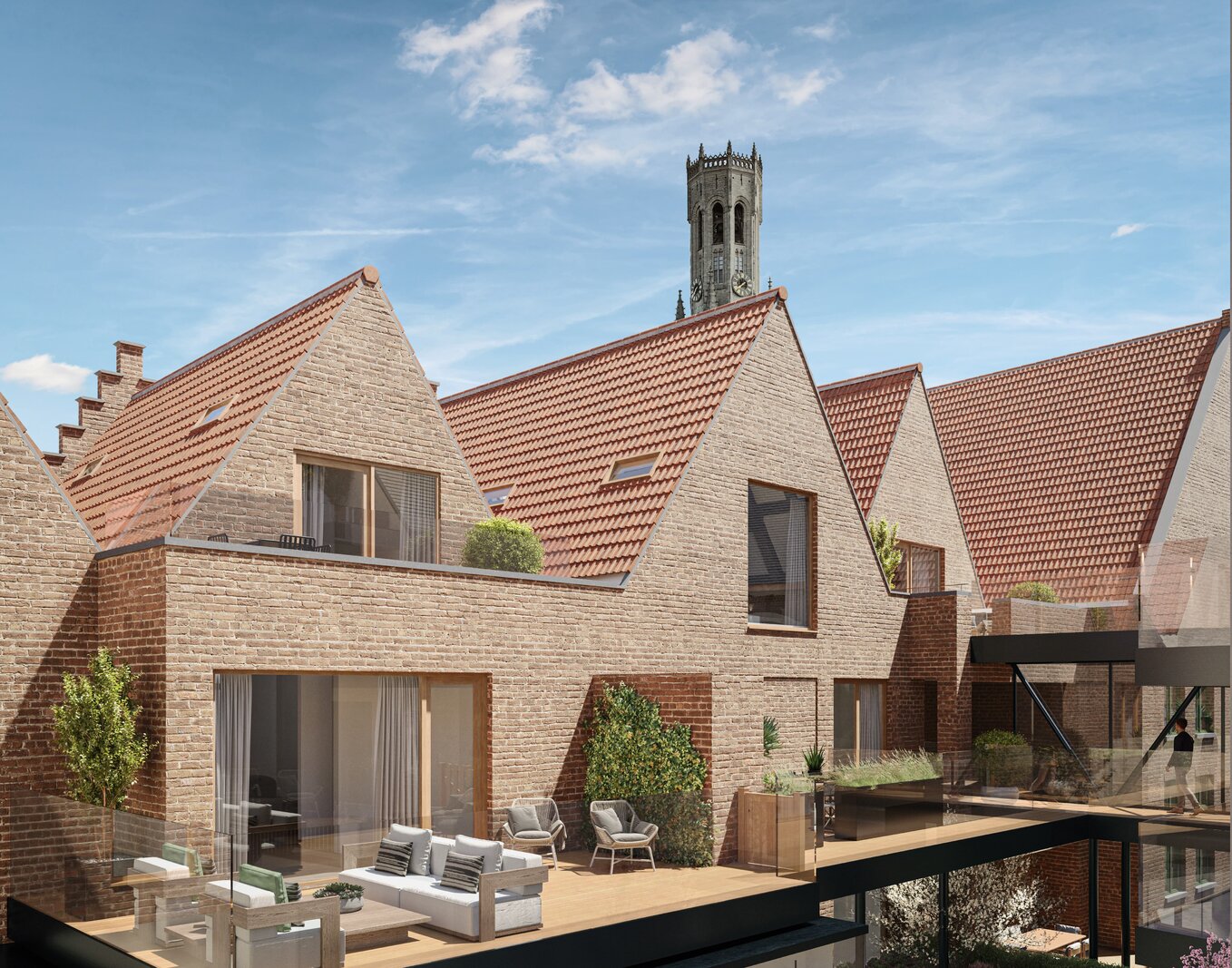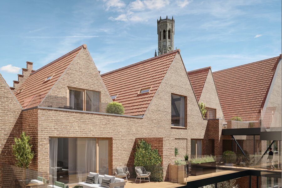 De open keuken met maatwerkkasten zorgt voor een optimale ruimte–invulling. De hal biedt toegang tot de 2 slaapkamers, het gastentoilet en de badkamer met inloopdouche. De ruime slaapkamers met dressing zijn open tot in de nok met charmante dakgebinten.Langs de straatzijde Oude Burg biedt de avondzon een uitzicht op de typische Brugse gevelrij.