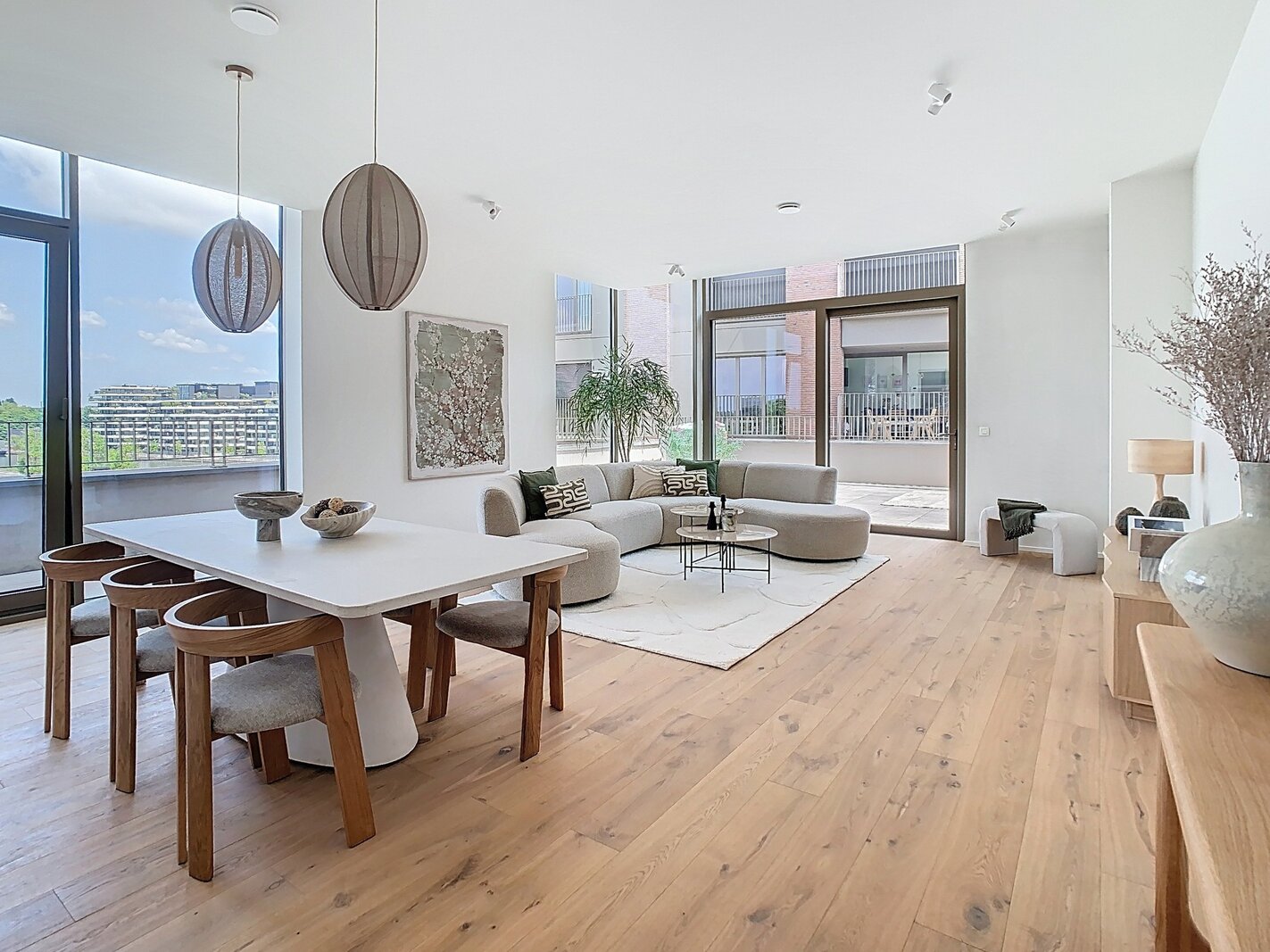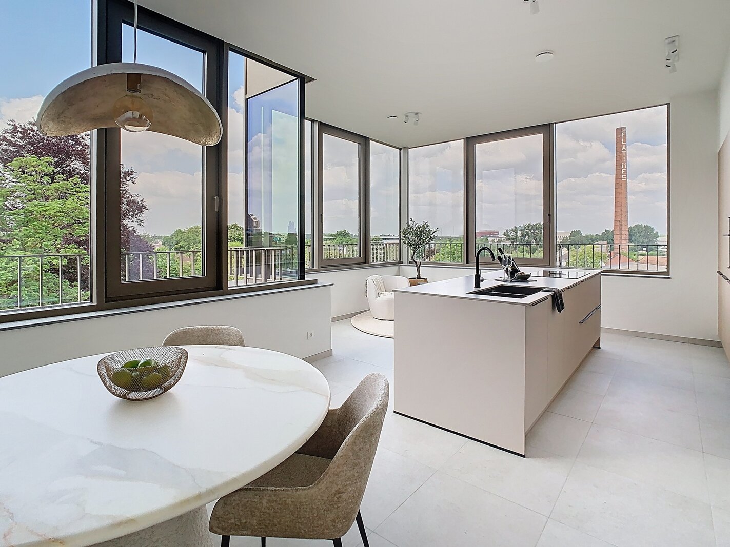 Dit prachtige penthouse (169 m²) telt drie slaapkamers en heeft een royaal oost gericht terras. Het appartement bevindt zich op de derde verdieping en omvat een inkom, toilet, 2 badkamers, 3 slaapkamers, moderne keuken en een ruime leefruimte met prachtig zicht op het terras. De grootste troef aan dit appartement, in het centrum van Hasselt? Een terras van maar liefst 66 m²!