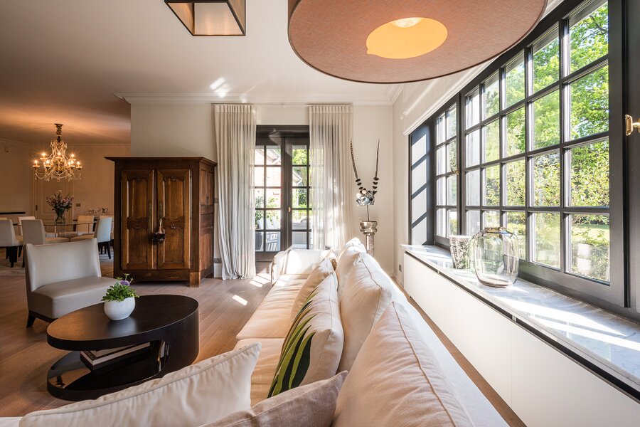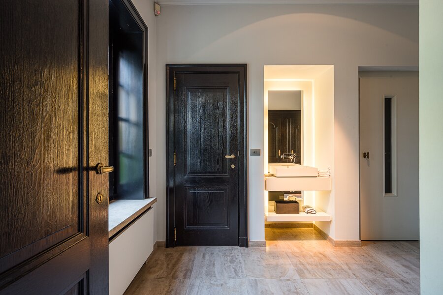 Inderdaad, de architect en de eigenaar hebben niet gespaard op de dure, duurzame en kwaliteitsvolle materialen. Perfect onderhouden.