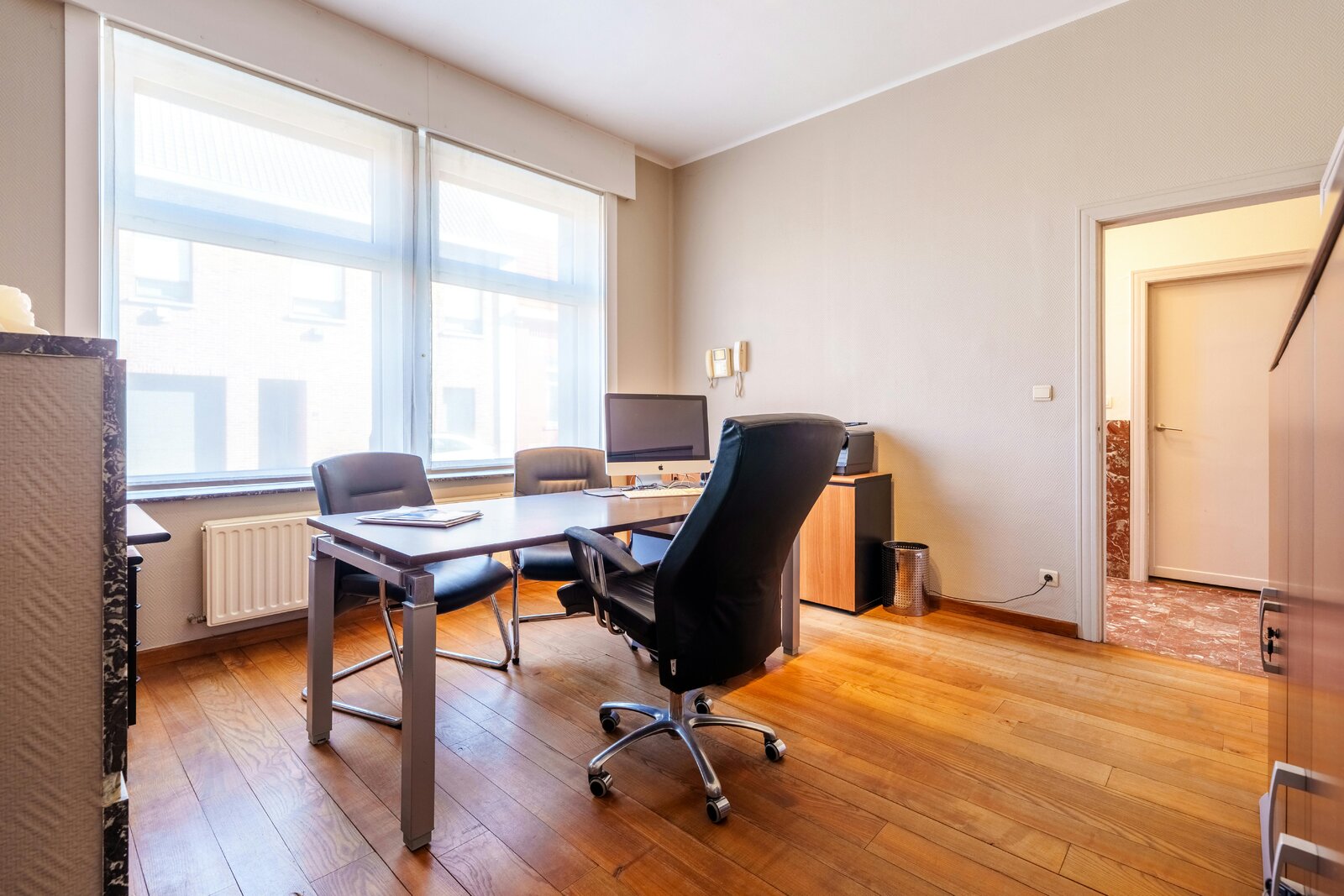 Dans le passé, ce bâtiment spacieux et polyvalent servait de bureau d'assurance et, auparavant, de cabinet médical avec pharmacie. Aujourd'hui, il offre des possibilités infinies : une salle de pratique élégante avec entrée et salle d'attente séparées, mais aussi l'emplacement idéal pour un espace commercial avec une maison arrière confortable.