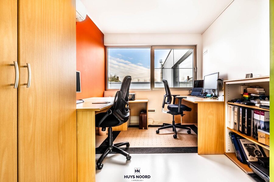 De afzonderlijk toegankelijke bureauruimte biedt de mogelijkheid om desgewenst een zelfstandige activiteit/vrij beroep uit te oefenen.