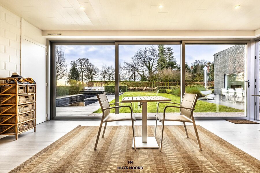 Als kers op de taart beschikt deze hedendaagse villa over een inpandige garage, overdekte parkeerplaats, een kelder van 70 M2 en nog extra bergruimte/garage bij het poolhouse.