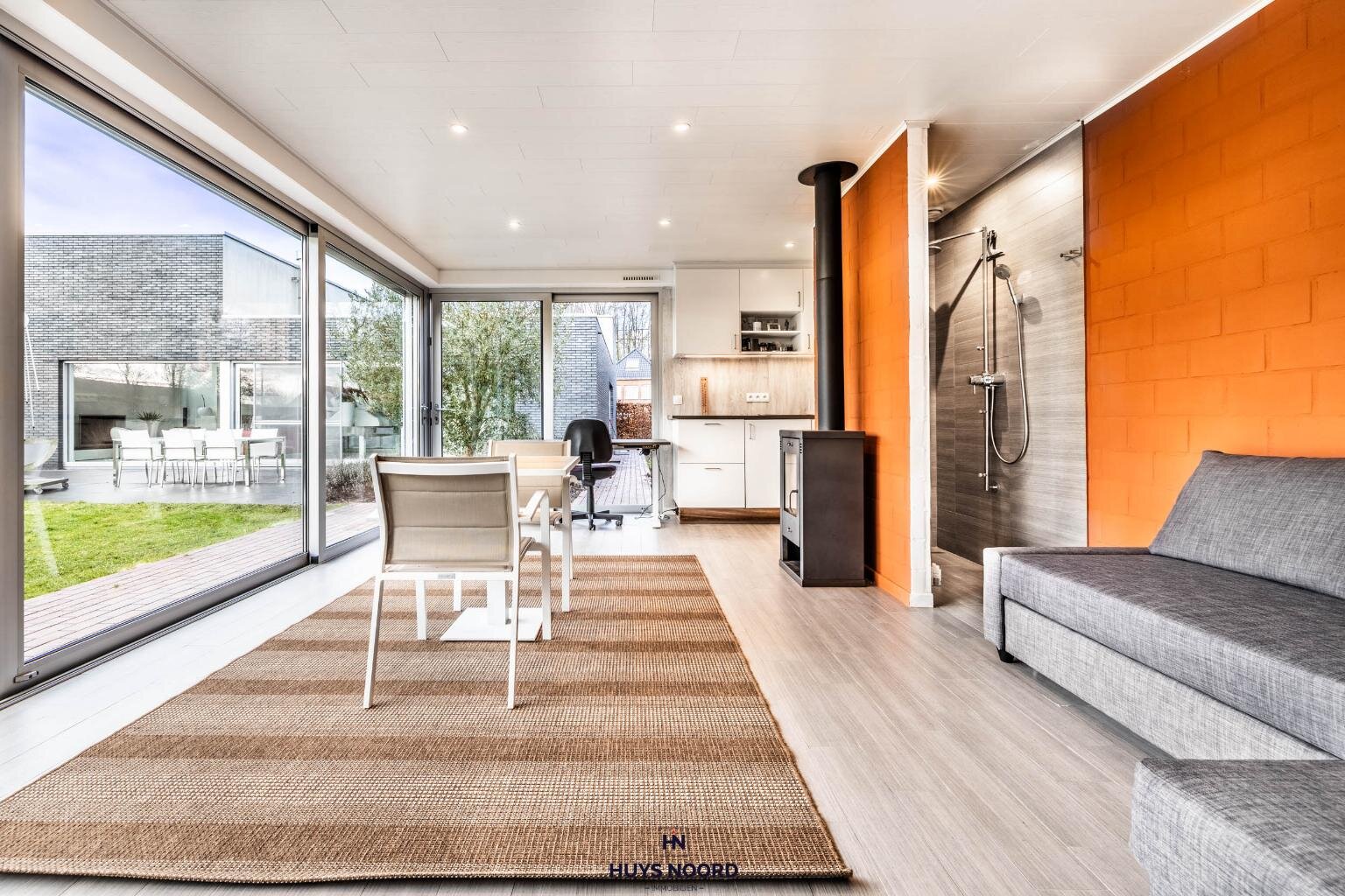 Het open woonconcept met lichtrijke woon- en eetkamer, volledig geïnstalleerde maatkeuken i.c.m. de grote raampartijen laten u optimaal genieten van alle seizoenen.