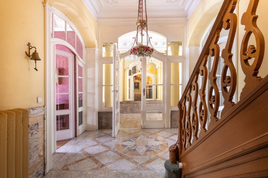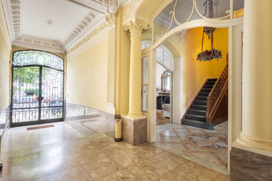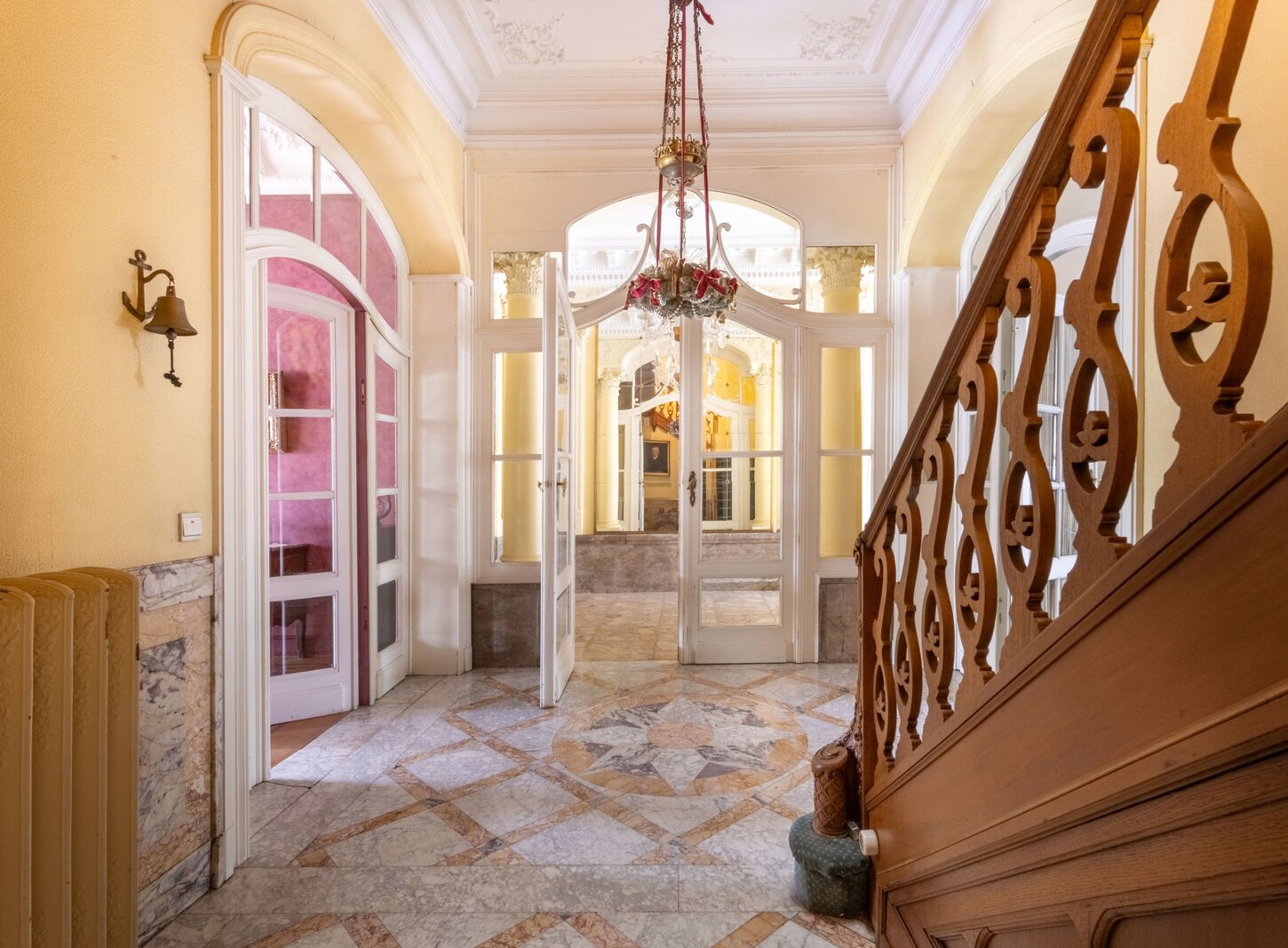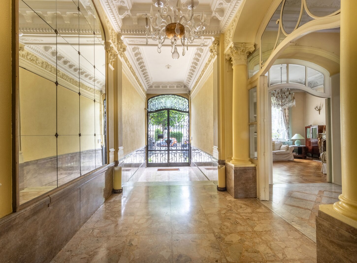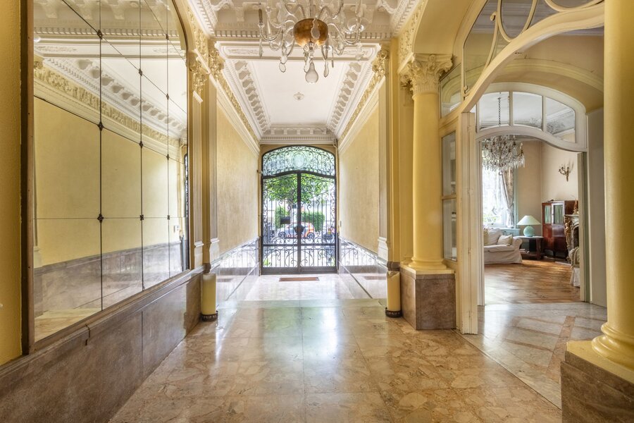 Dès le hall d'entrée, les éléments d'origine donnent le ton : marbres nobles, hauts plafonds, parquets anciens, moulures délicates, boiseries et cheminées en marbre composent une atmosphère de prestige, rappelant les fastes des grandes demeures bourgeoises.